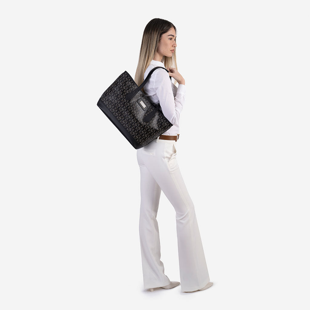 Stella e модно попадение за твоите ежедневие. С нея ще бъдеш забележима навсякъде. Моделът е изработен от естествена кожа и промазка с принт, разполага с две дръжки, а вътрешната част е изключително просторна. Практичният несесер към модела е функционално решение за ена по-организирана дамска чанта.