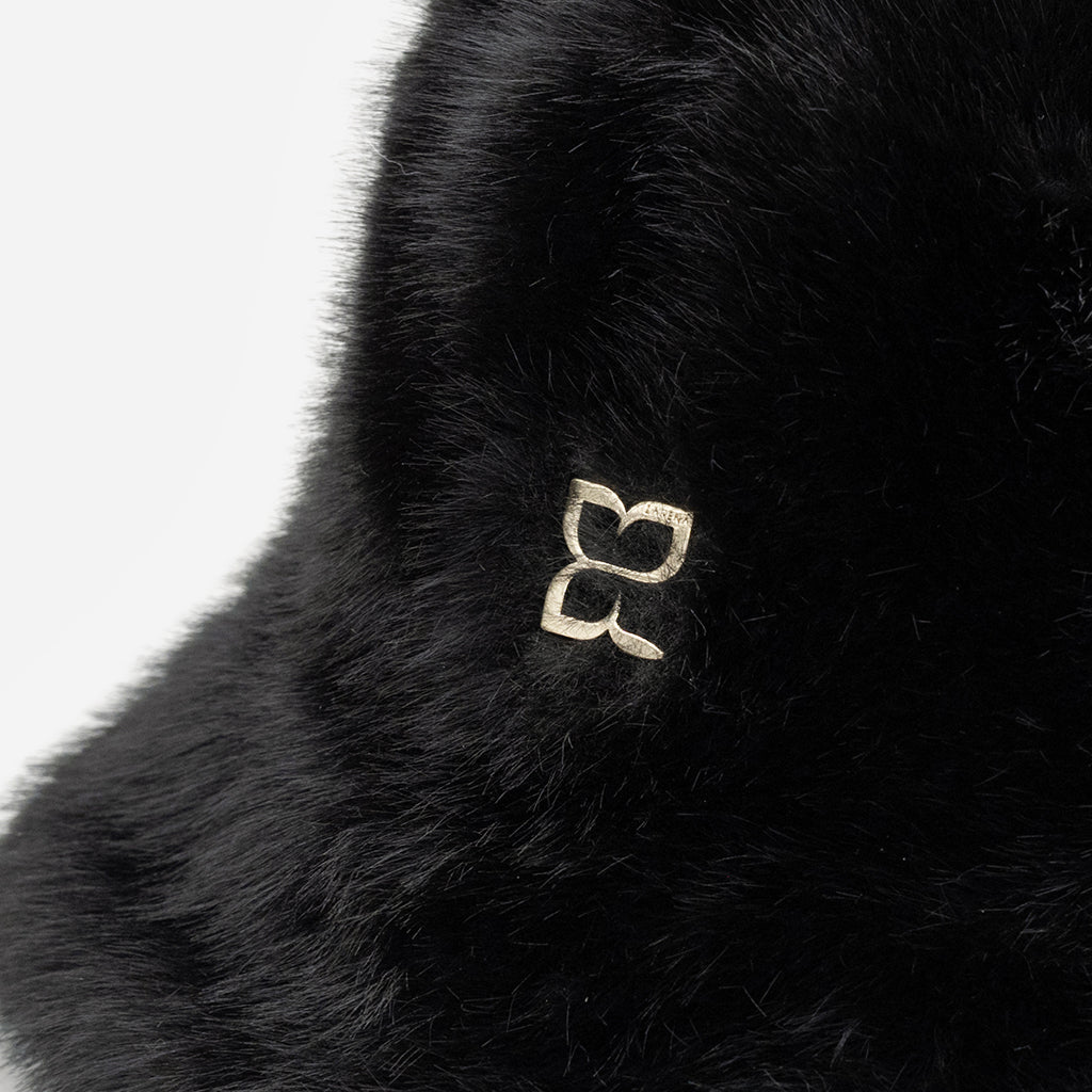 Бъкет шапка от teddy плюш с лого - черна