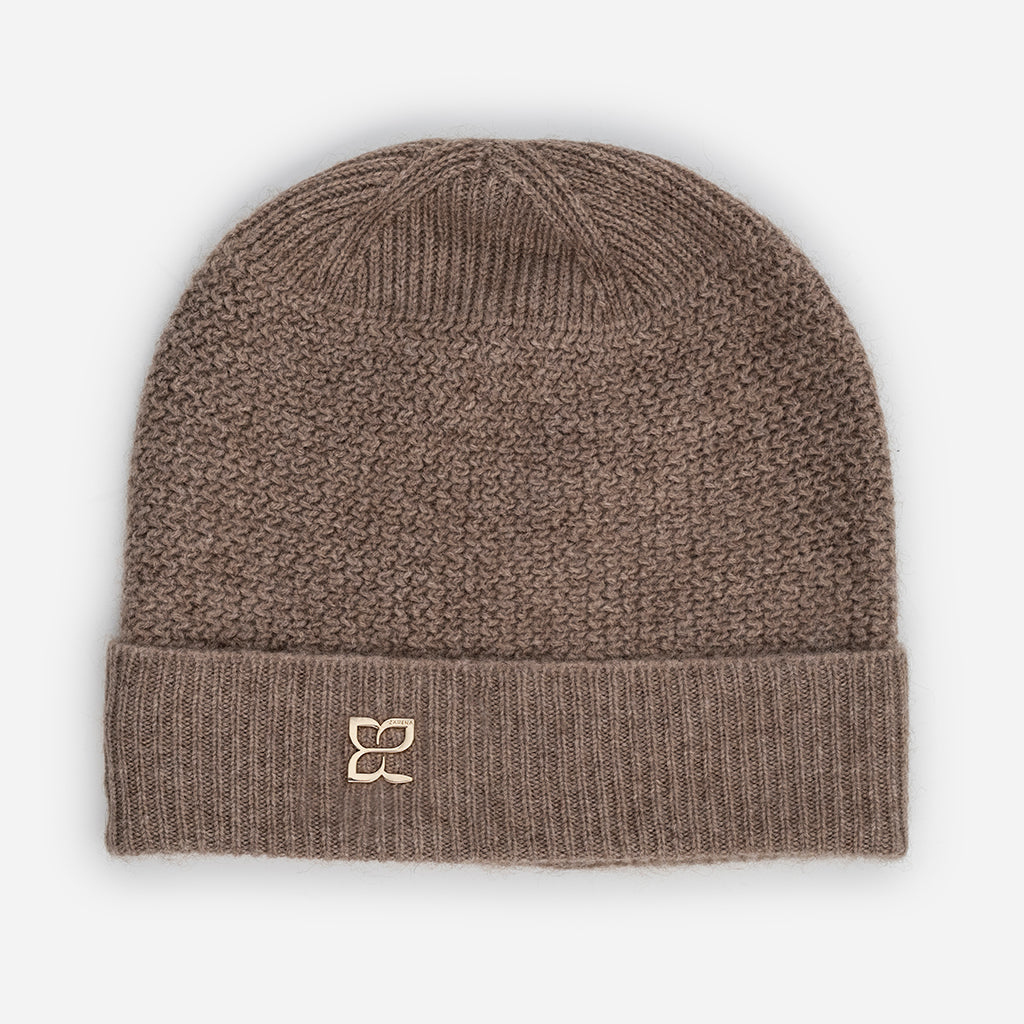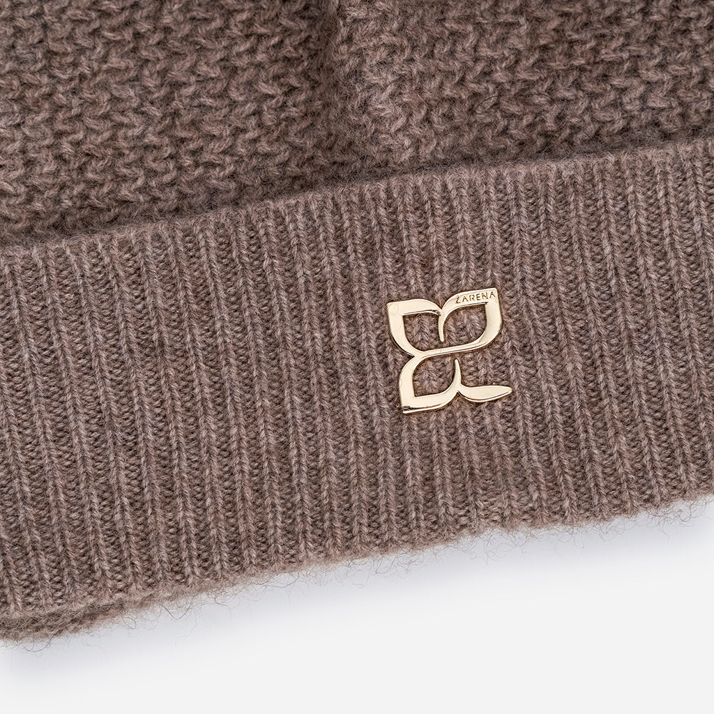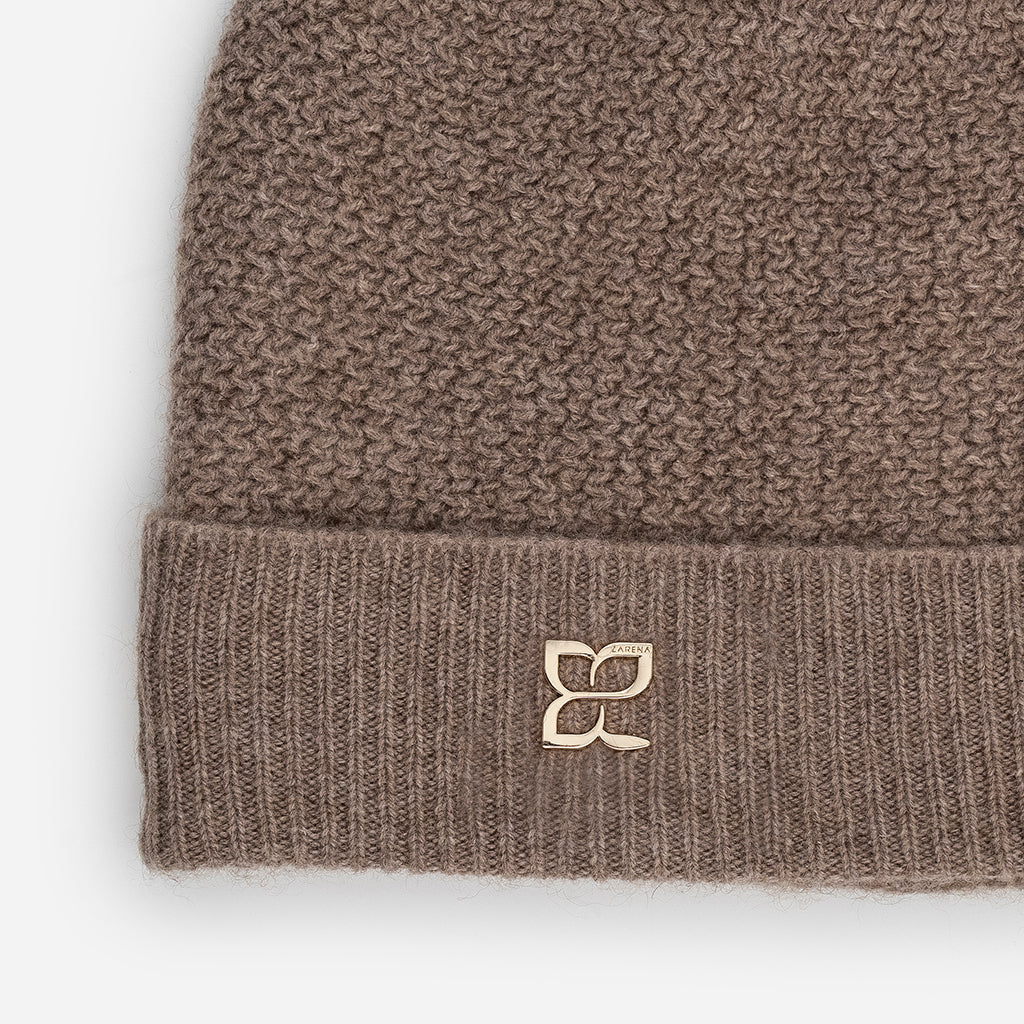 Плетена шапка от кашмир с метално лого - кафява