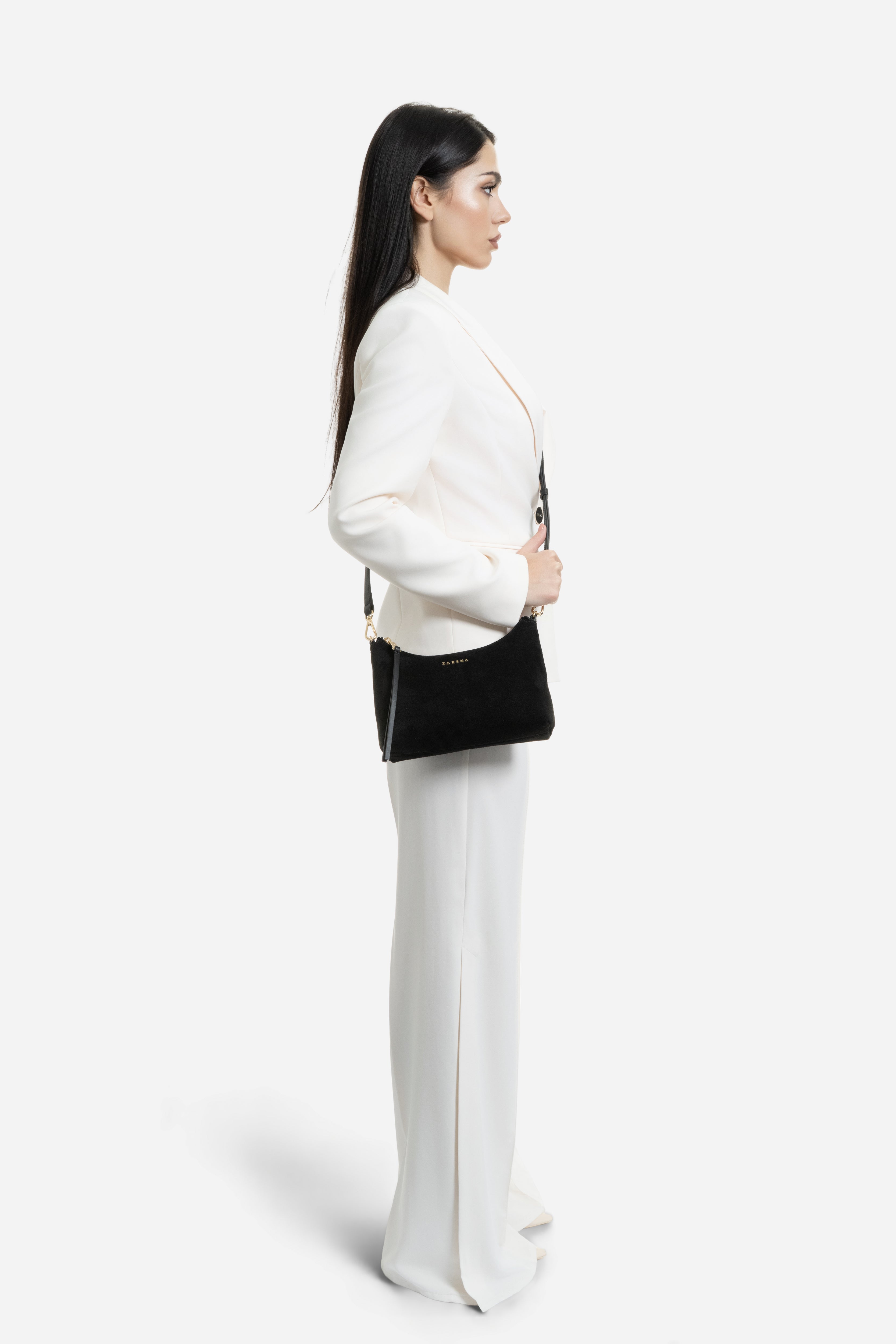 Чанта Amy от велур е малка, кокетна и пълна с характер – твоят нов любим аксесоар. Крос боди дръжката ти позволява да я носиш лесно, докато подчертаваш своя стил. Перфектна за теб, когато искаш да добавиш игрив и елегантен акцент към визията си.