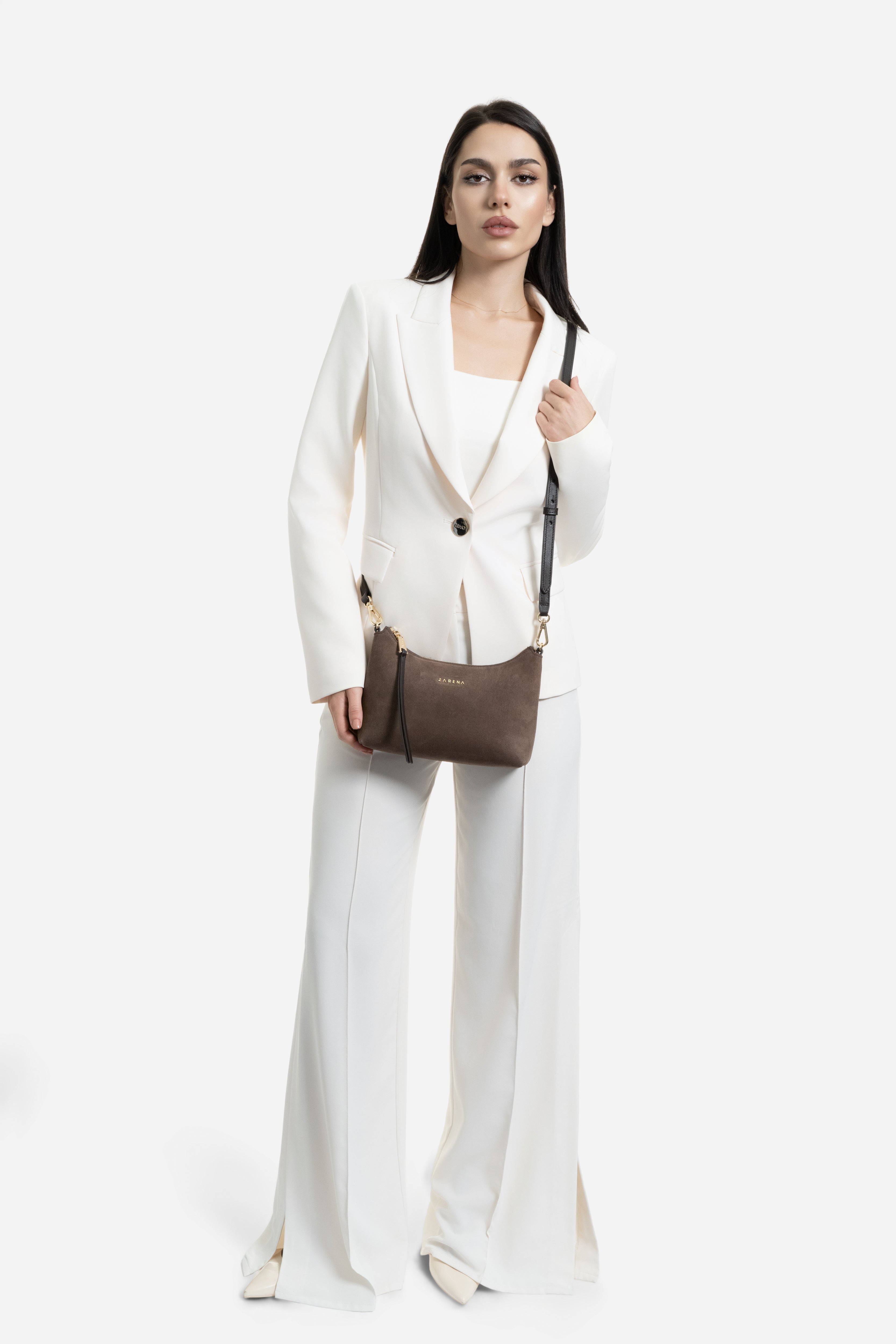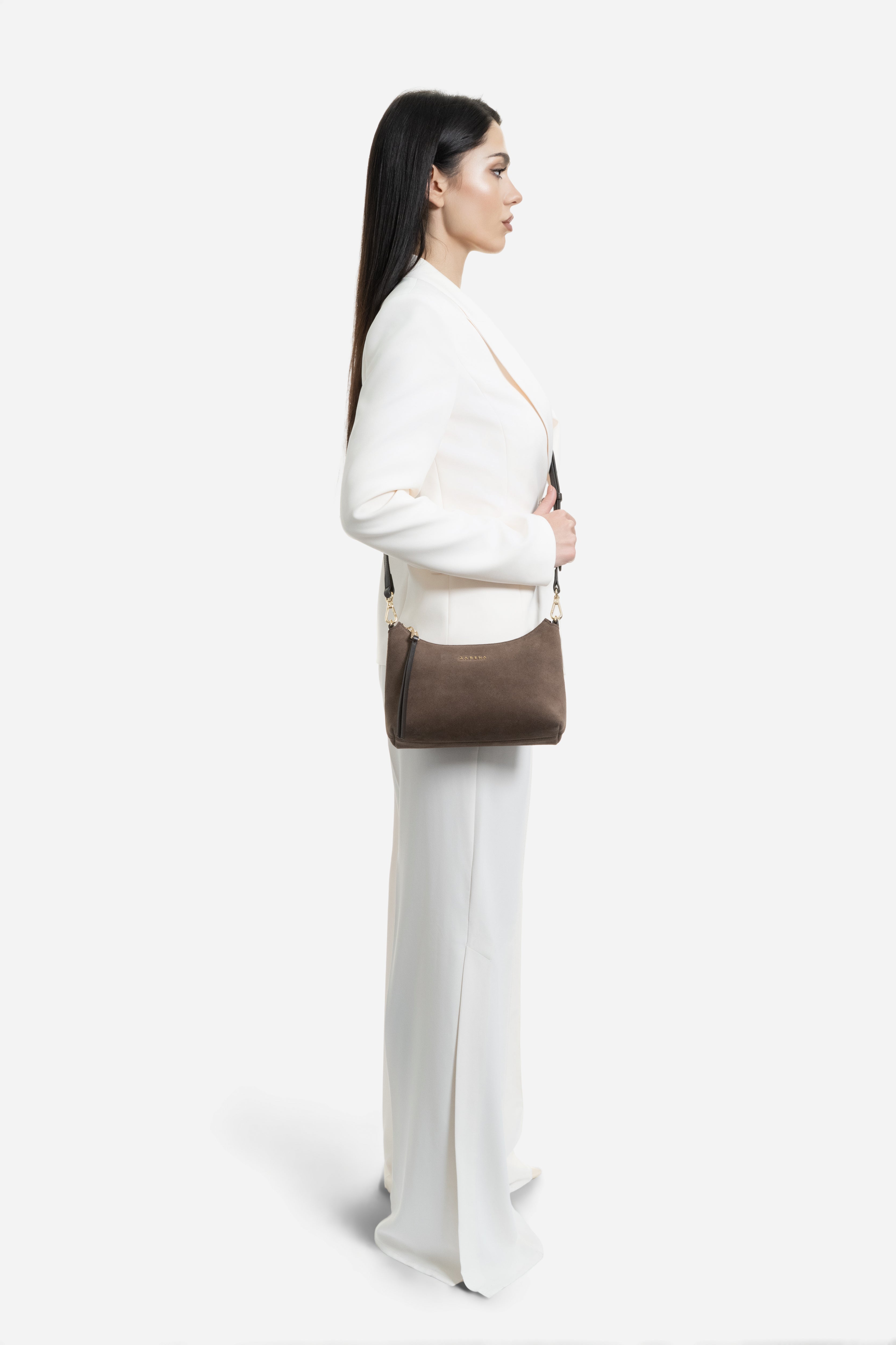 Чанта Amy от велур е малка, кокетна и пълна с характер – твоят нов любим аксесоар. Крос боди дръжката ти позволява да я носиш лесно, докато подчертаваш своя стил. Перфектна за теб, когато искаш да добавиш игрив и елегантен акцент към визията си.