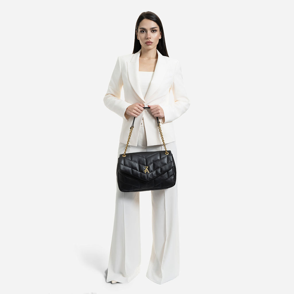 Catherine е чантата, която съчетава елегантност и удобство в един аксесоар. Магнитното копче прави закопчаването лесно и сигурно, а синджирът ти дава свободата да избереш как да я носиш. Удобното вътрешно общо пространство, един отворен джоб и един джоб с цип съчетават практичност с изключителен комфорт.