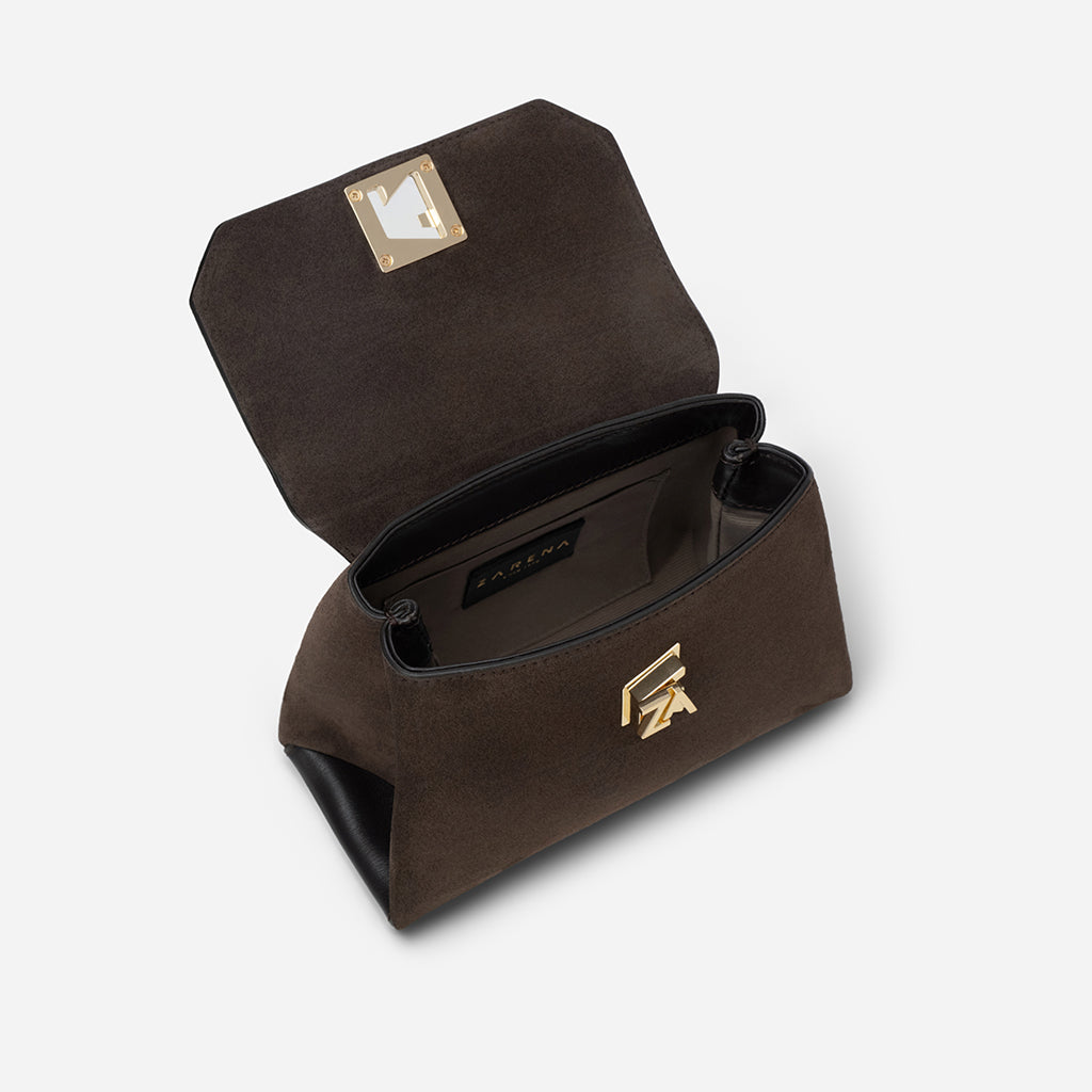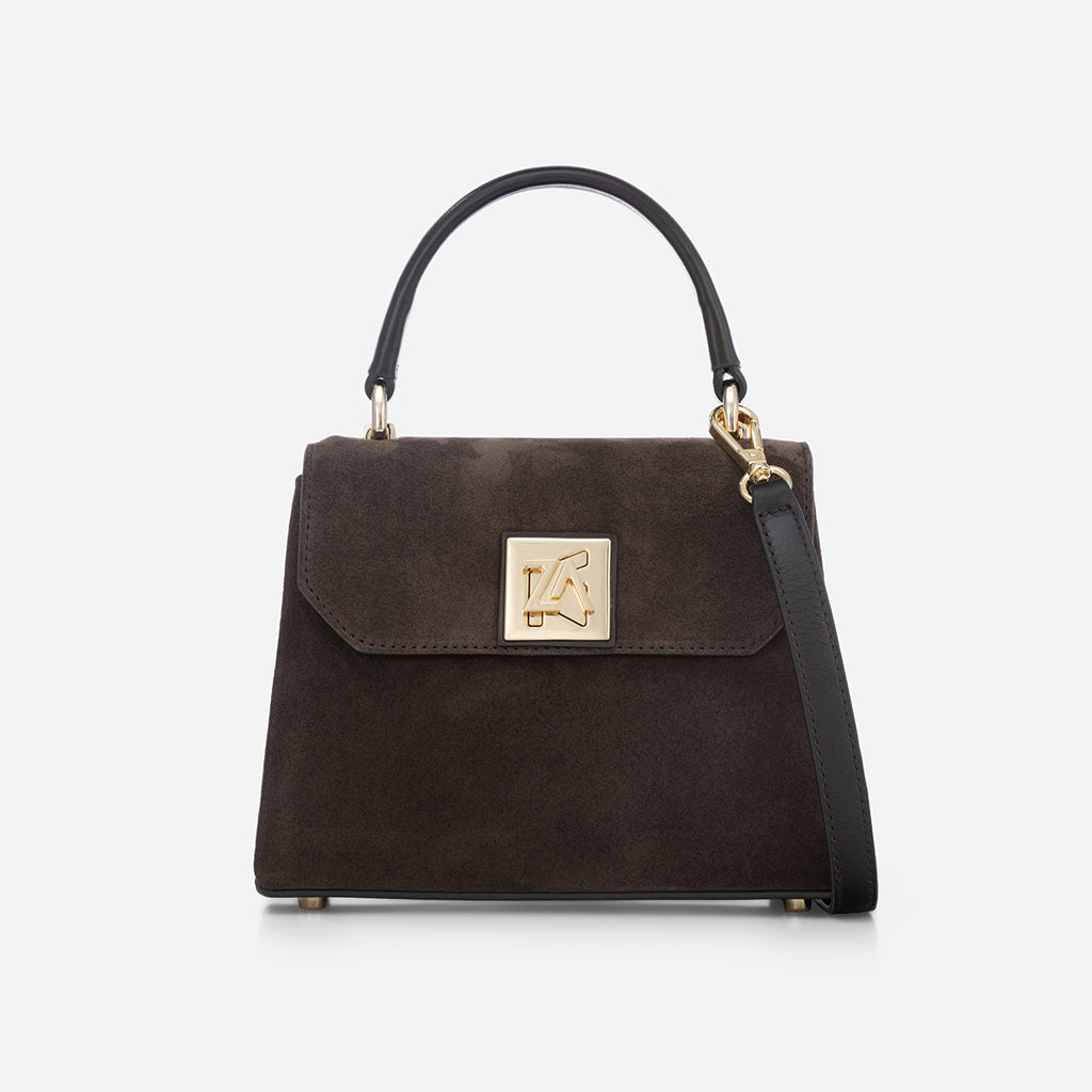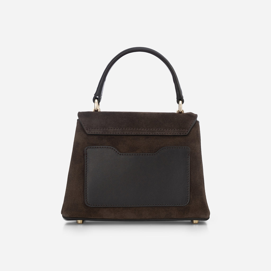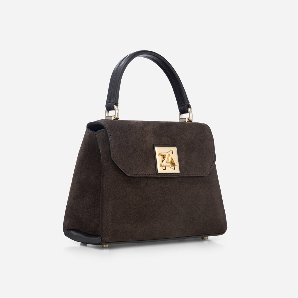 Iris mini - малка крос боди чанта от велур в тъмнокафяво
