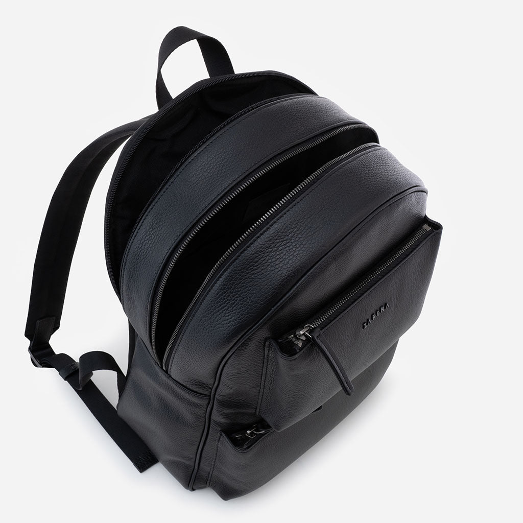 Лаптоп раницата е създадена да съчетава стил и издръжливост в изчистен и елегантен дизайн. С двете си големи отделения с цип и двата външни малки джоба тя осигурява практично пространство както за лаптоп и документи, така и за всички ежедневни принадлежности. Малката дръжка и регулируемите презрамки гарантират удобство и комфорт, превръщайки я в идеалния спътник за динамичното ежедневие.