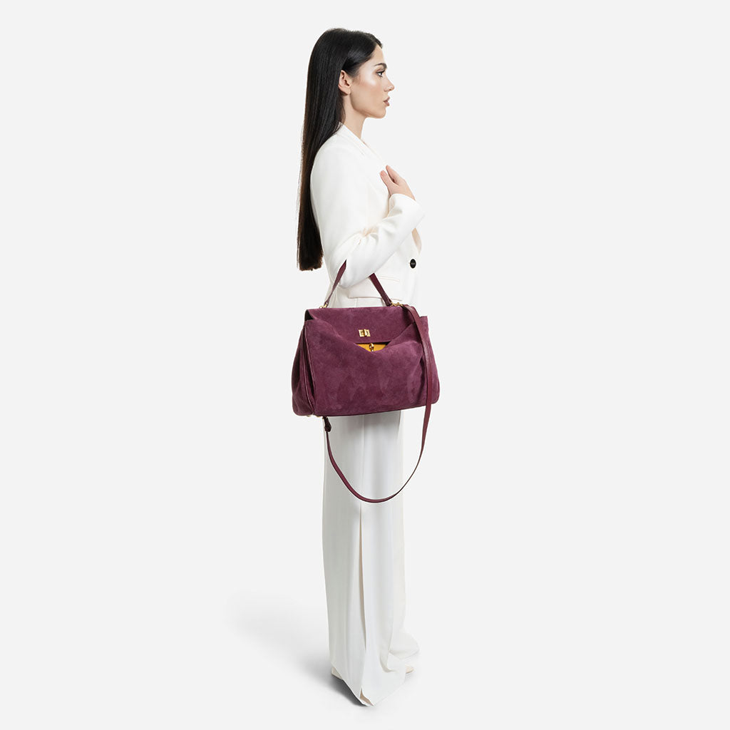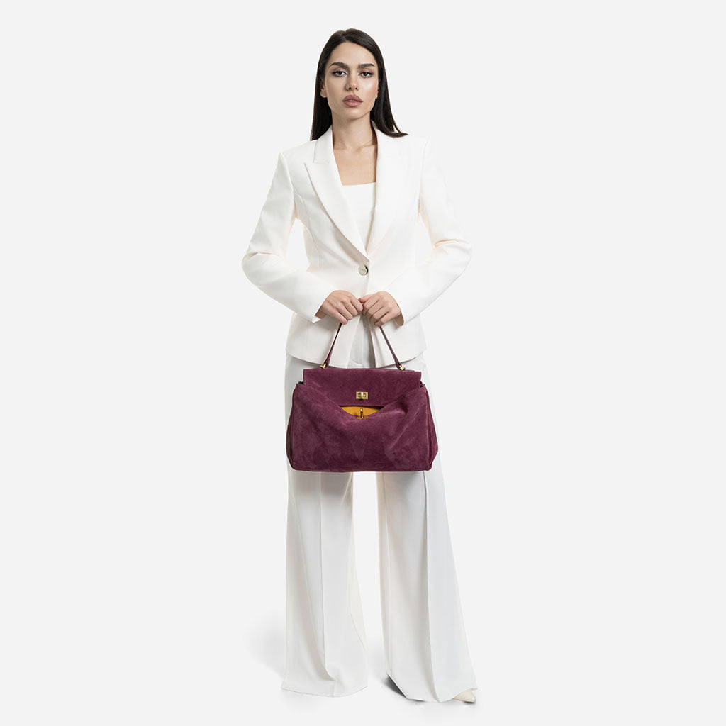 Magdalena - чанта за рамо от велур в бордо