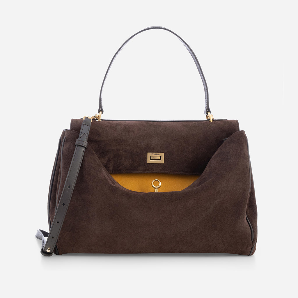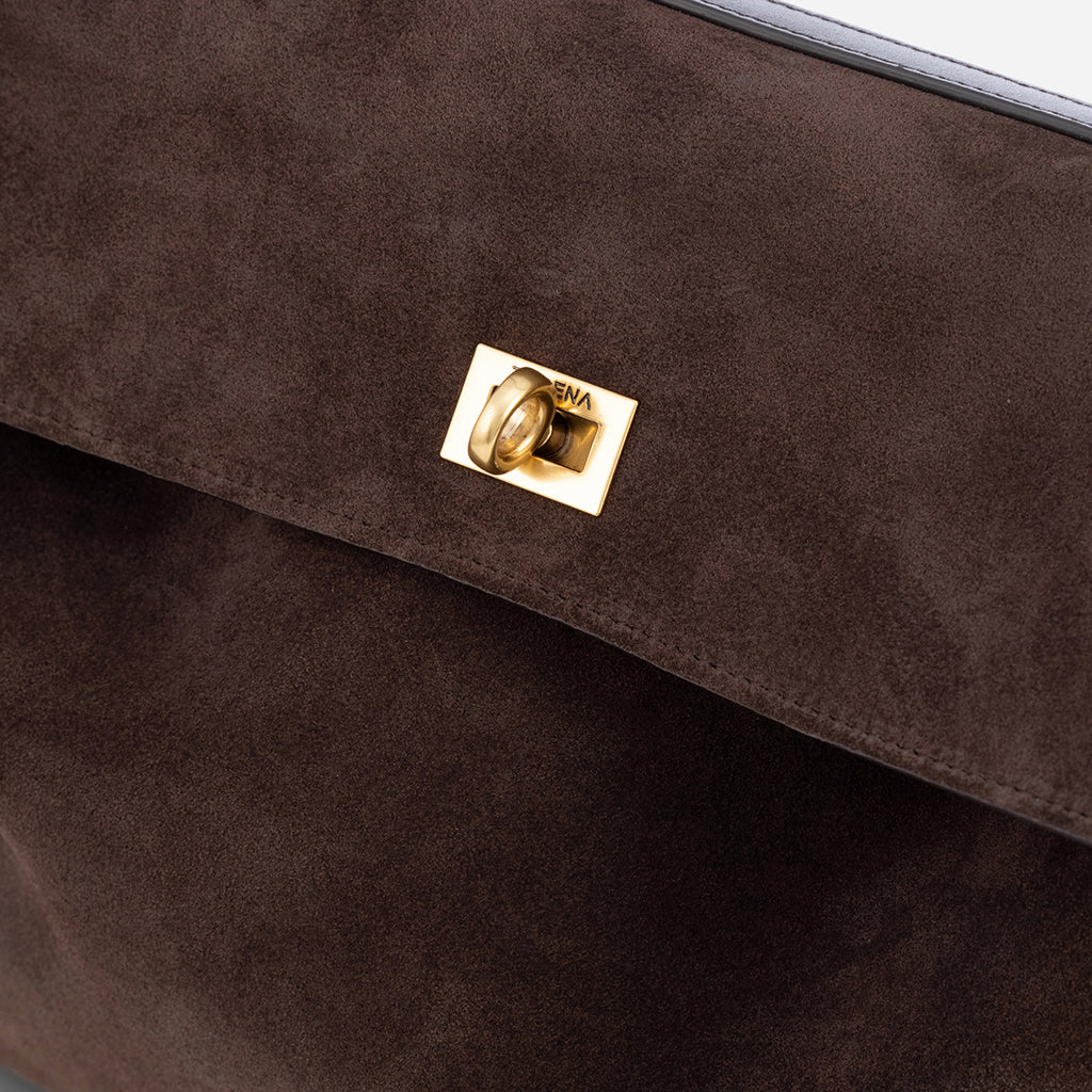 Magdalena - чанта за рамо от велур в тъмнокафяво