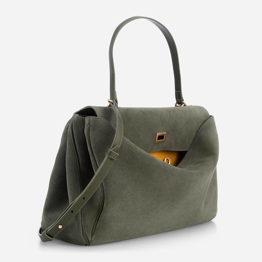 Magdalena - чанта за рамо от велур в зелено