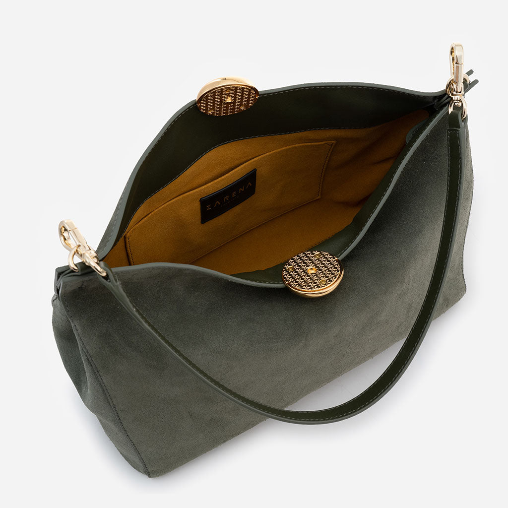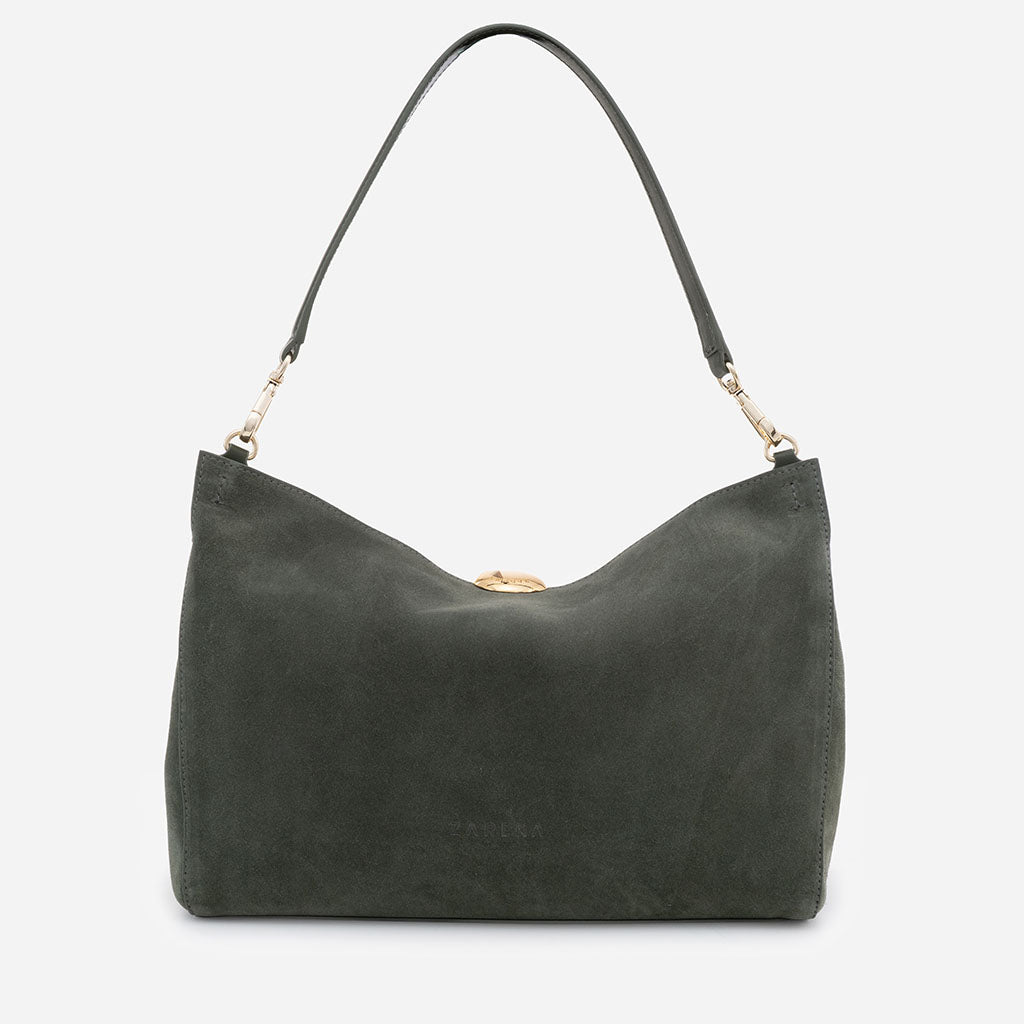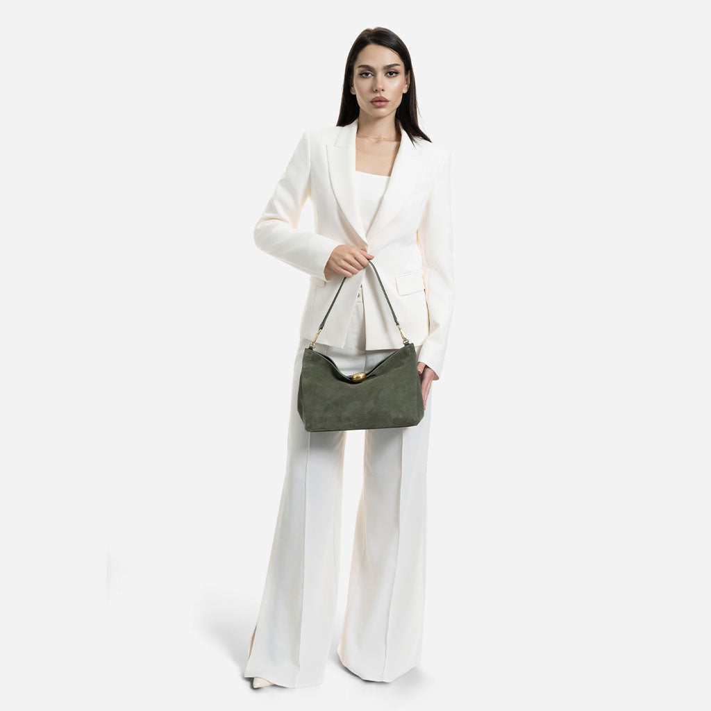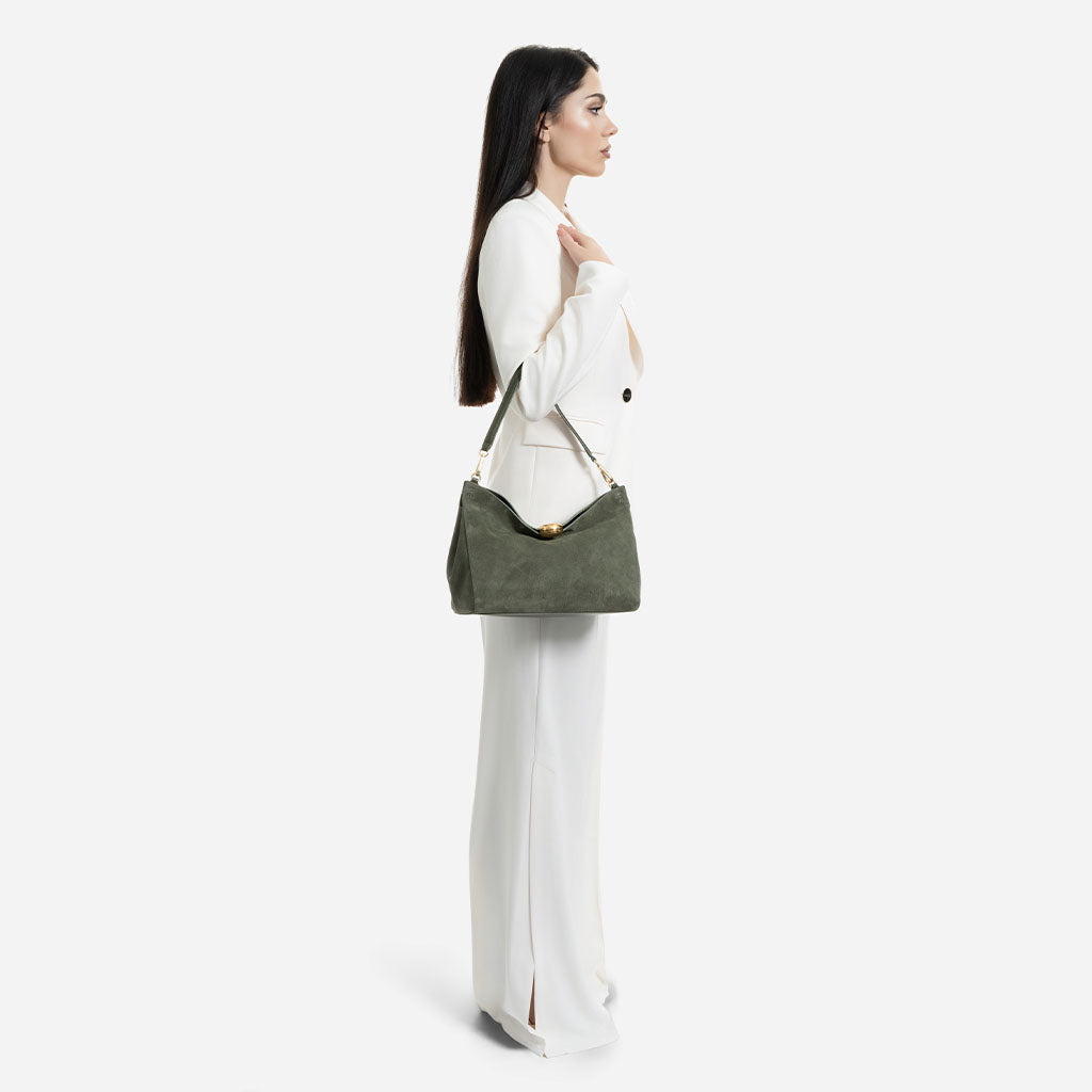 Monica - чанта за рамо от велур в зелено