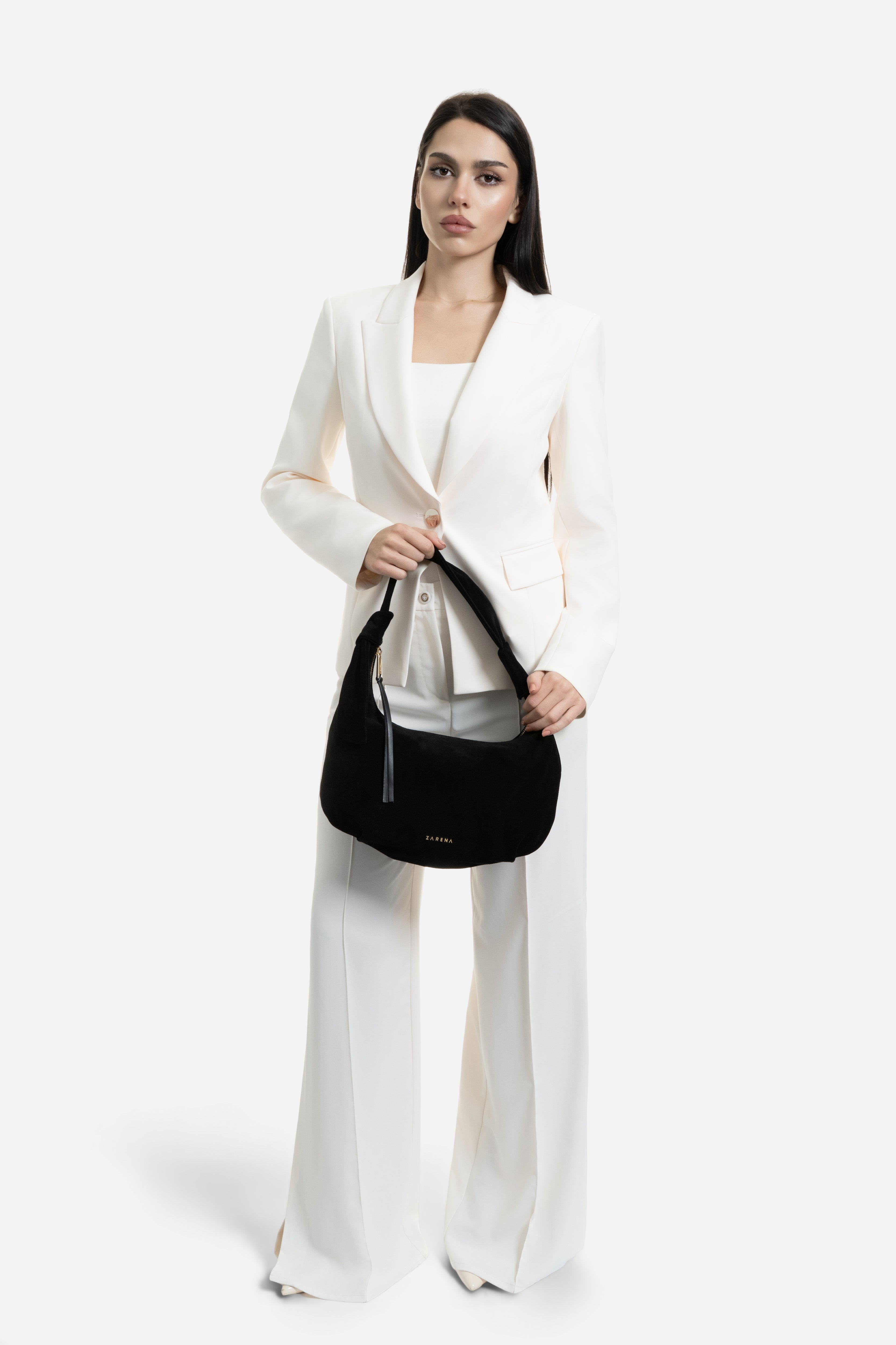 Чанта за рамо Simona от велур съчетава комфорт и модерна елегантност в един изискан аксесоар. Тя те следва с лекота през целия ден, придавайки финален щрих на твоя аутфит. Идеална за теб, когато искаш да добавиш модерна нотка и женствен чар към визията си.