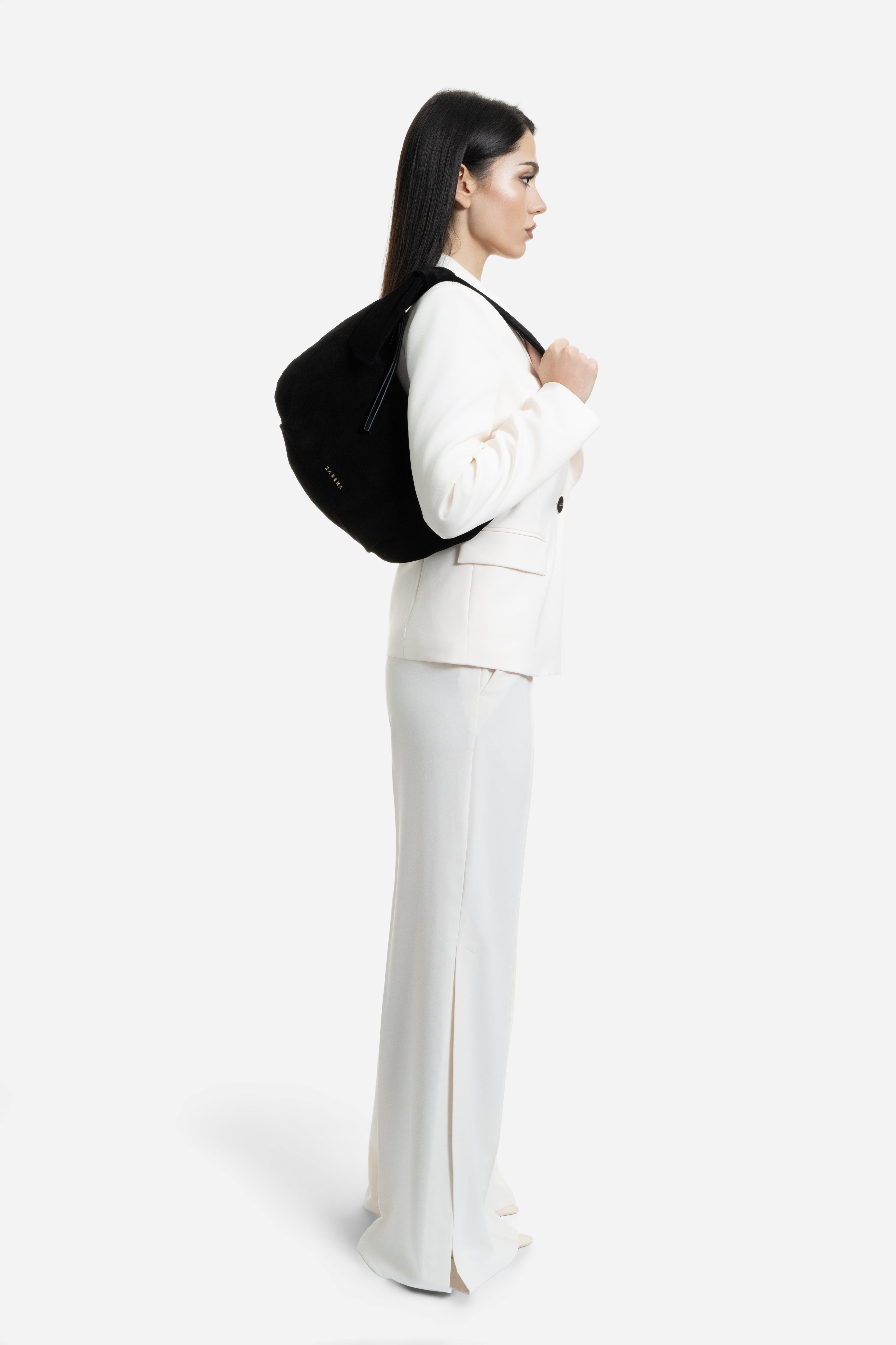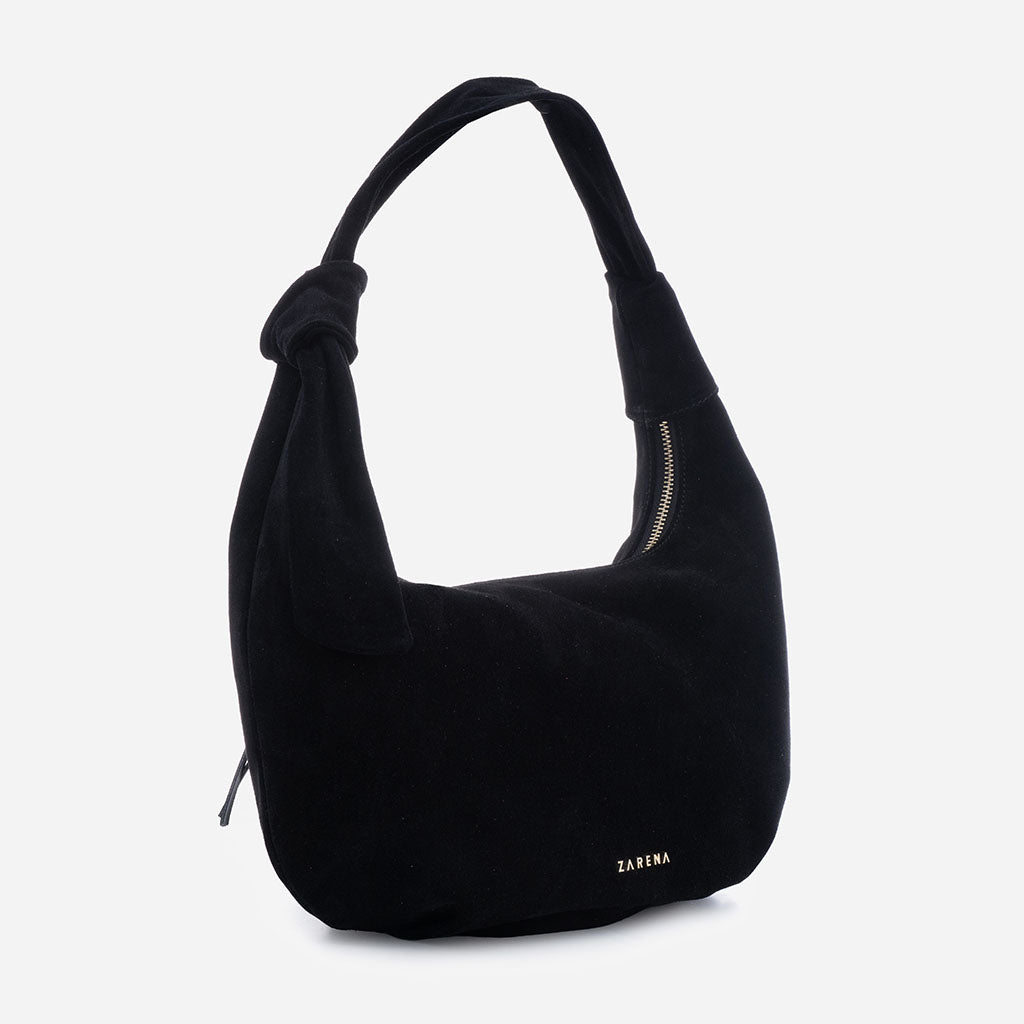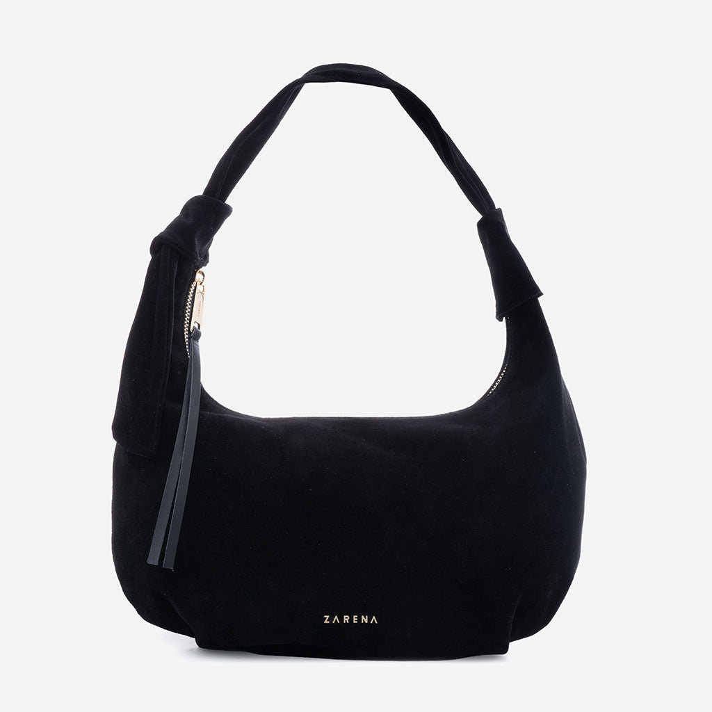 Simona - чанта за рамо от велур в черно