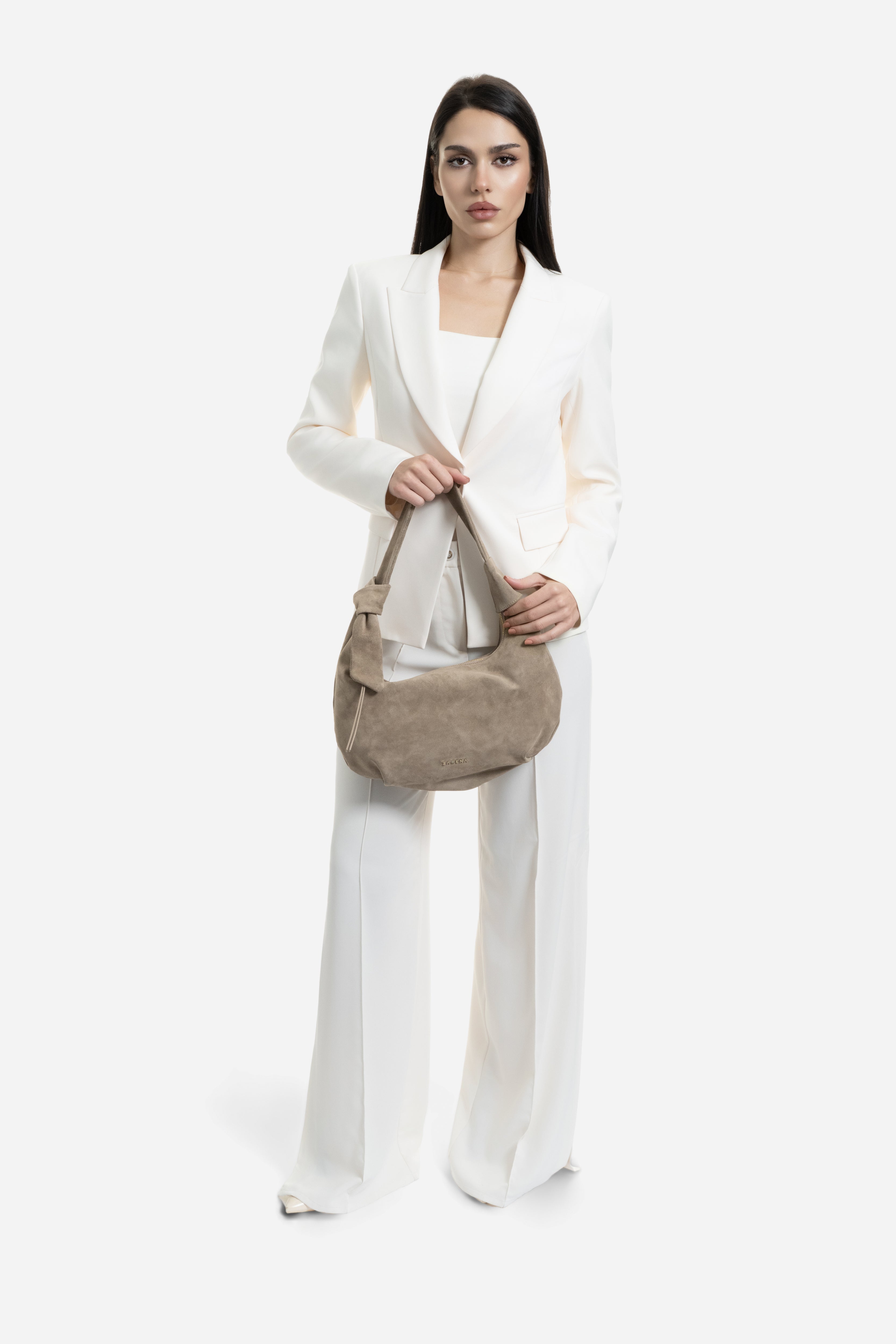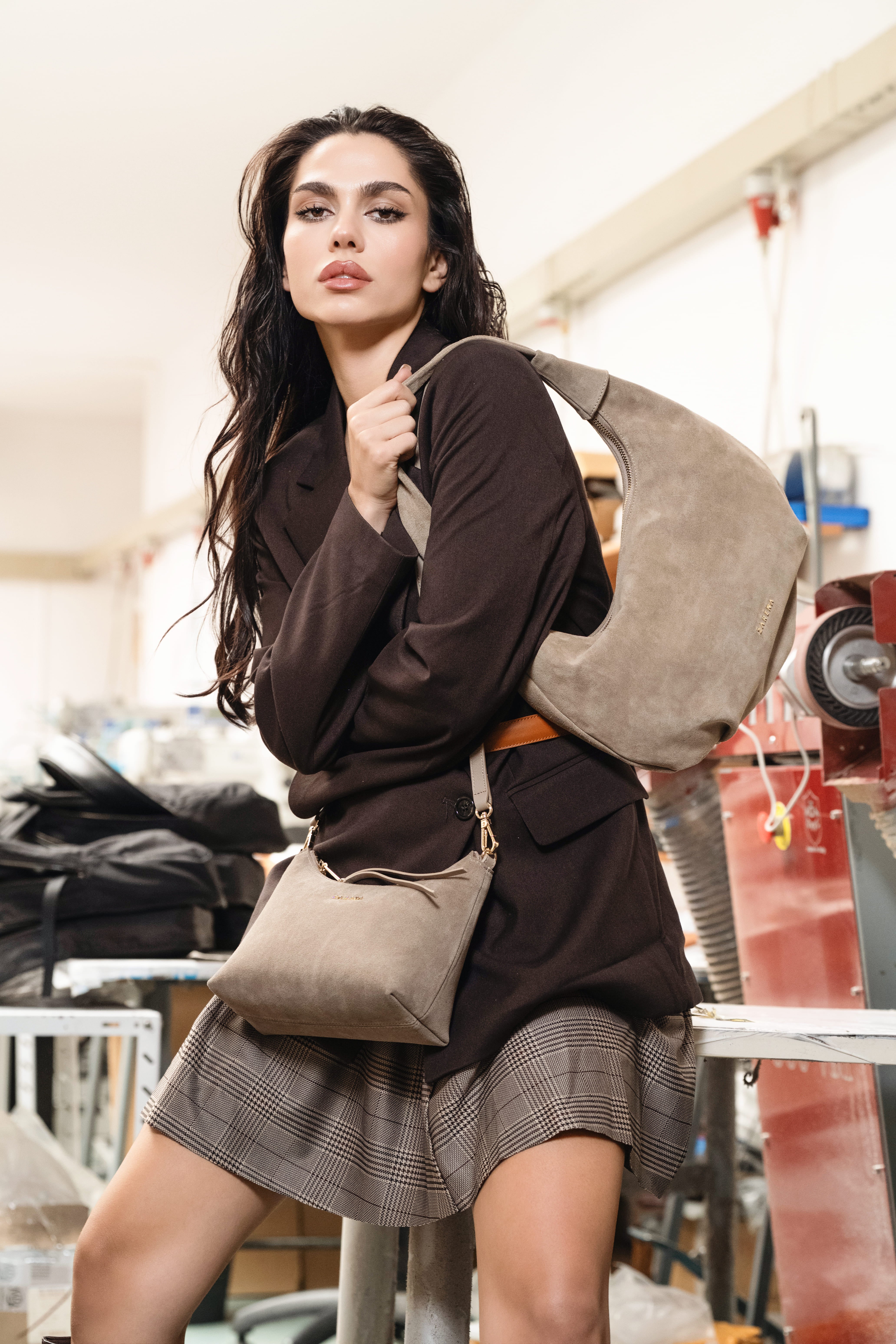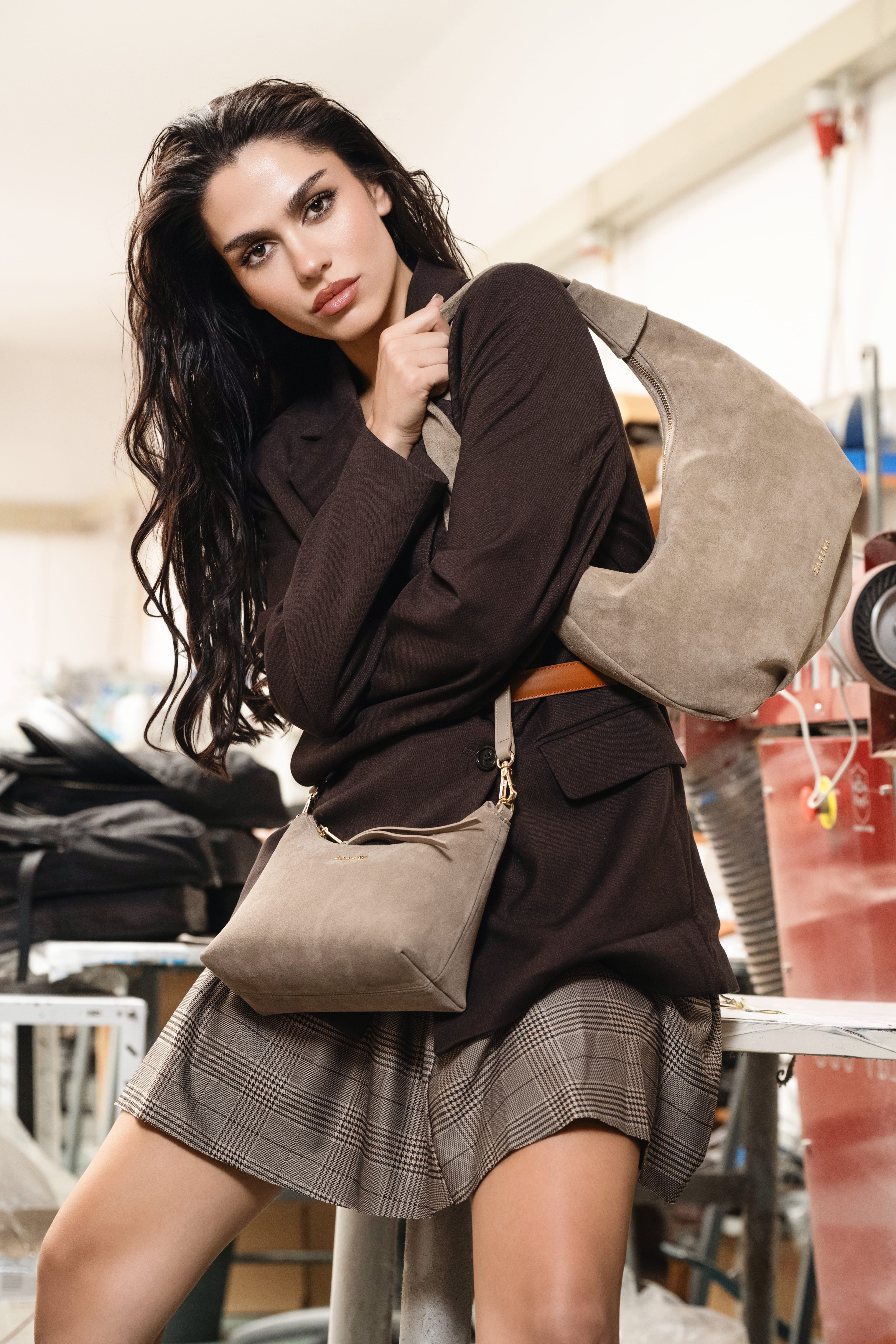 Чанта за рамо Simona от велур съчетава комфорт и модерна елегантност в един изискан аксесоар. Тя те следва с лекота през целия ден, придавайки финален щрих на твоя аутфит. Идеална за теб, когато искаш да добавиш модерна нотка и женствен чар към визията си.