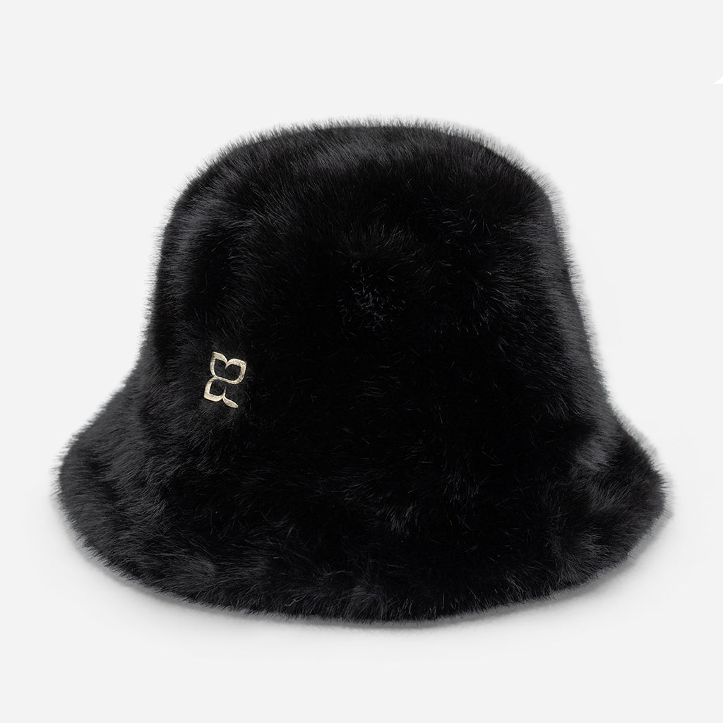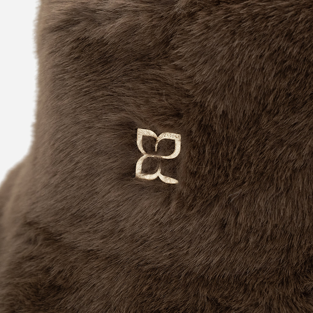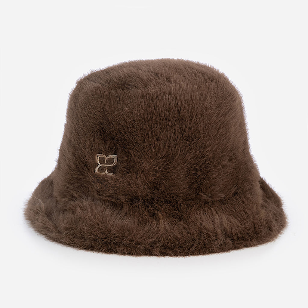 Бъкет шапка от teddy плюш с лого - цвят капучино