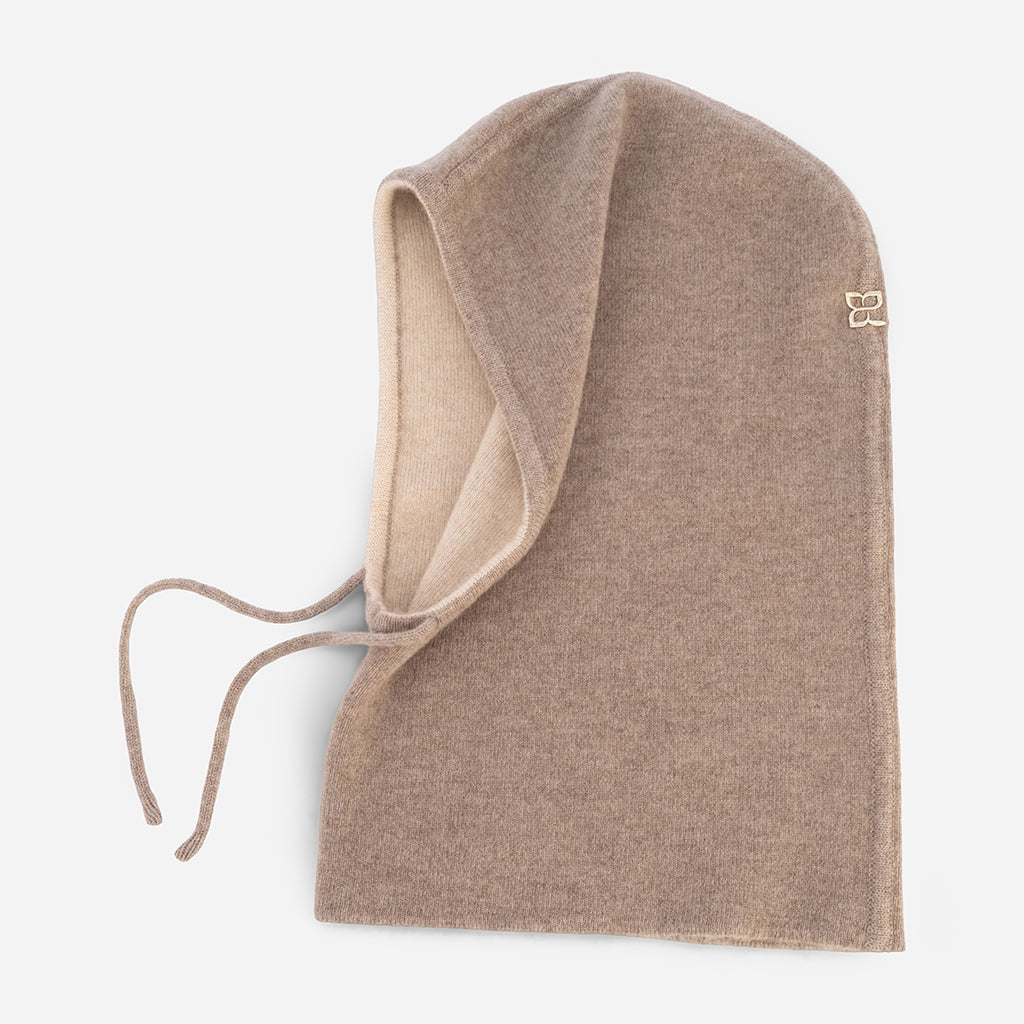 Шапка тип балаклава от кашмир - сивкаво бежова