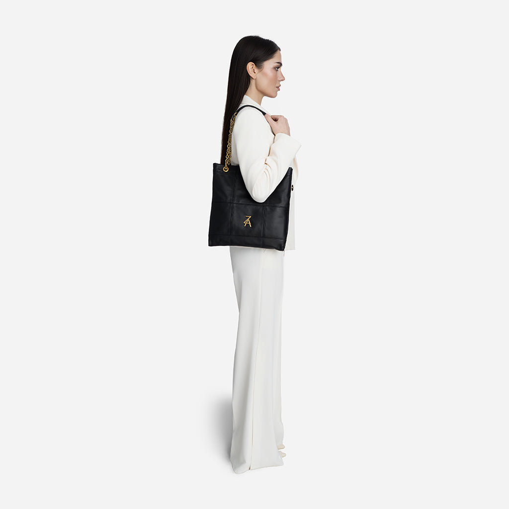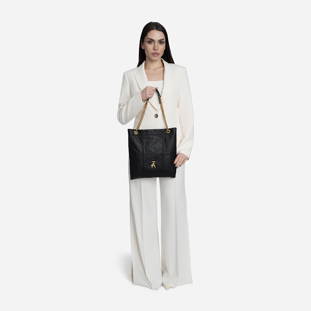 Чанта Lea впечатлява с изчистен и елегантен дизайн, който лесно ще съчетаеш с всеки свой аутфит. Меката ѝ текстура и декоративните шевове ѝ придават стилен, модерен характер, а златистият синджир добавя изискан акцент към визията ти. Можеш да я носиш с две къси дръжки на рамо, а при нужда дръжките се оформят в дълга кросбоди дръжка за повече удобство. Идеалният избор е за ежедневието ти и за по-елегантни поводи.