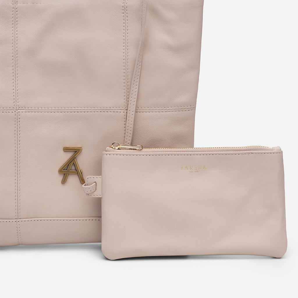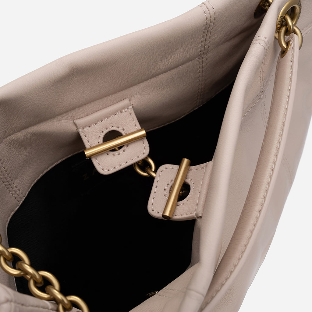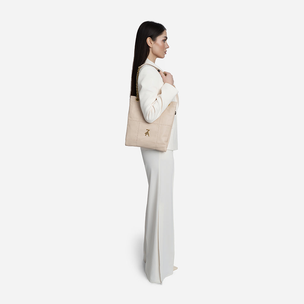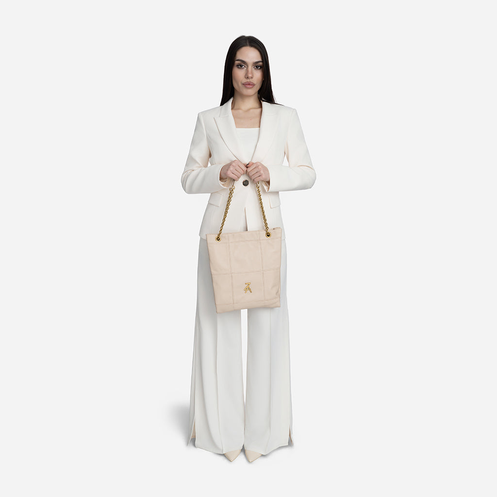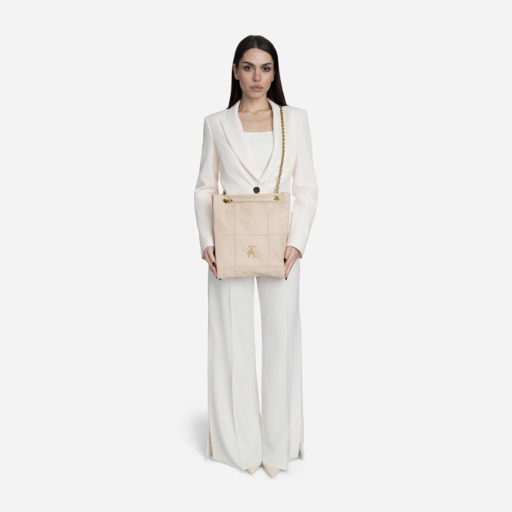 Чанта Lea впечатлява с изчистен и елегантен дизайн, който лесно ще съчетаеш с всеки свой аутфит. Меката ѝ текстура и декоративните шевове ѝ придават стилен, модерен характер, а златистият синджир добавя изискан акцент към визията ти. Можеш да я носиш с две къси дръжки на рамо, а при нужда дръжките се оформят в дълга кросбоди дръжка за повече удобство. Идеалният избор е за ежедневието ти и за по-елегантни поводи.
