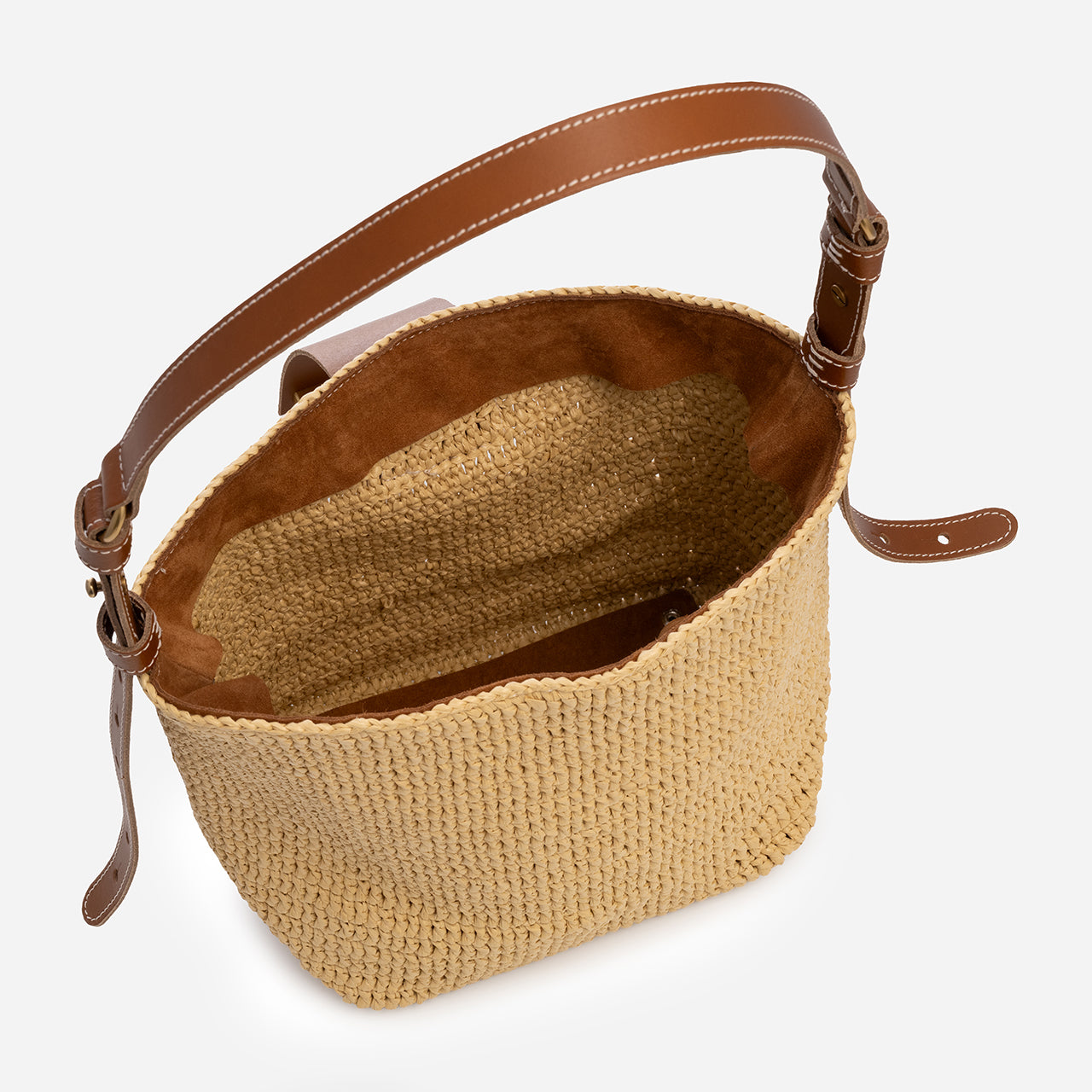 Alina - чанта за рамо от рафия и кожа - кафява