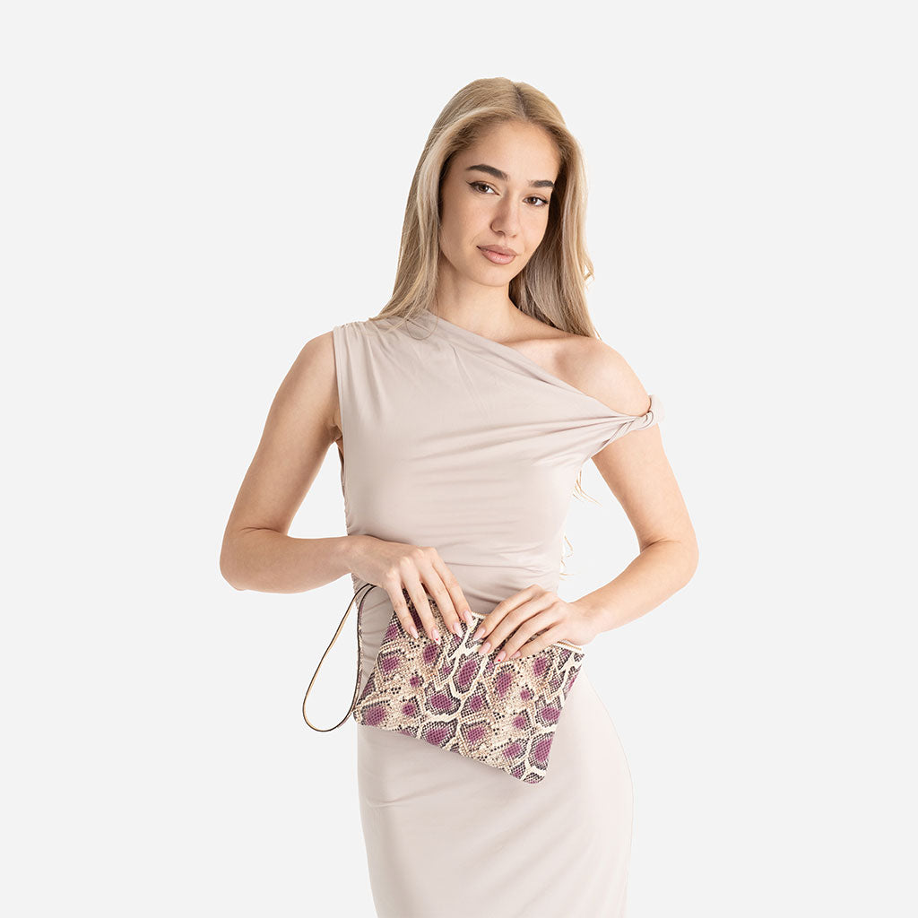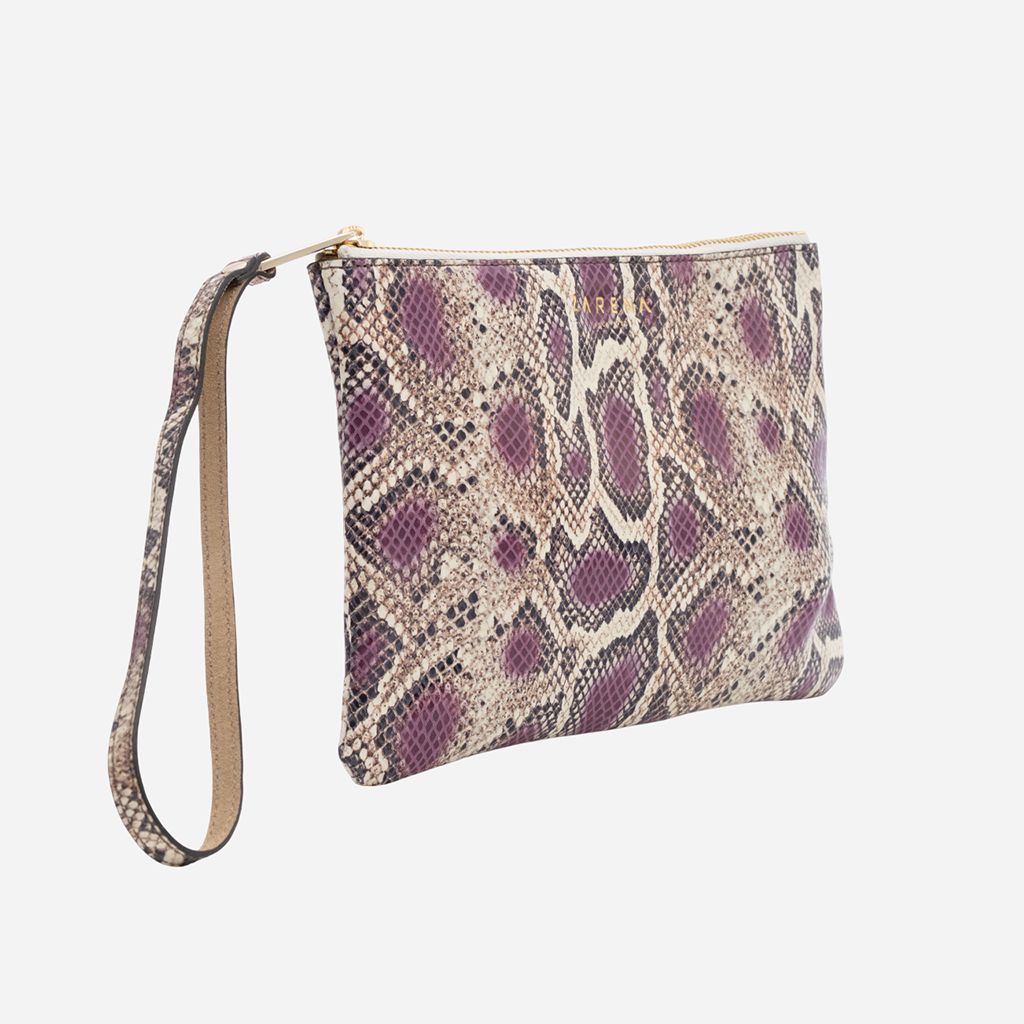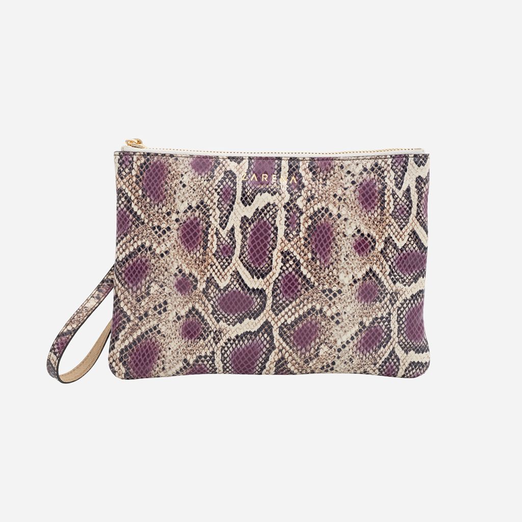 Несесер от естествена кожа с дръжка - лилав змийски принт