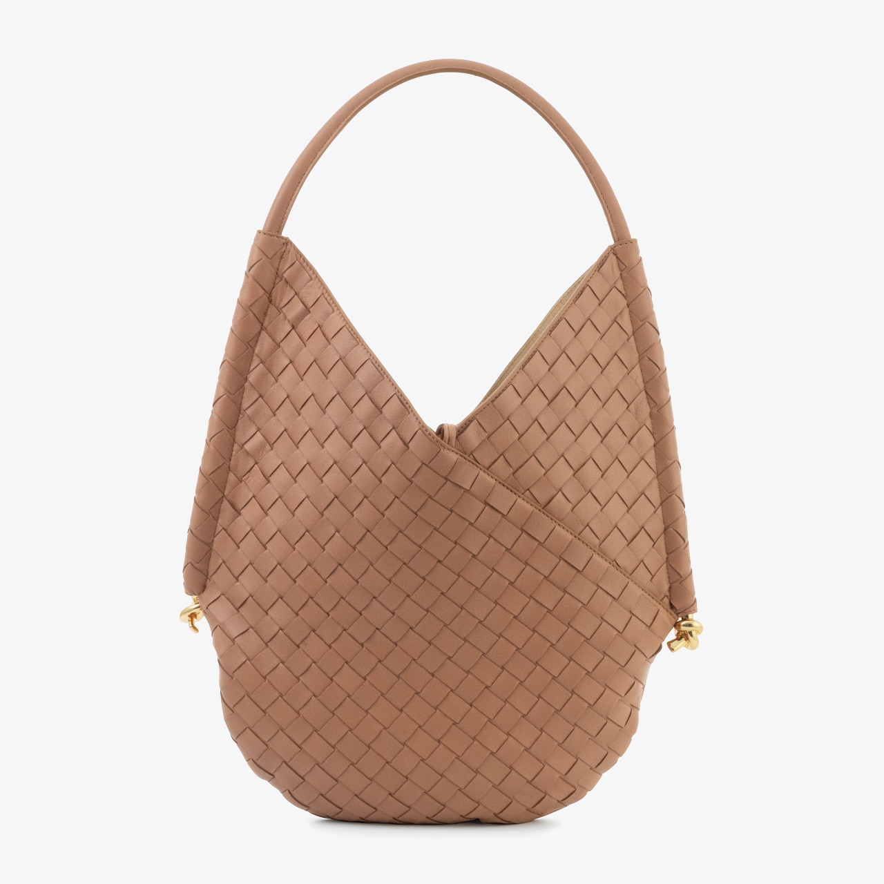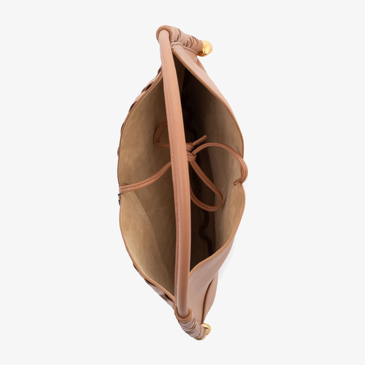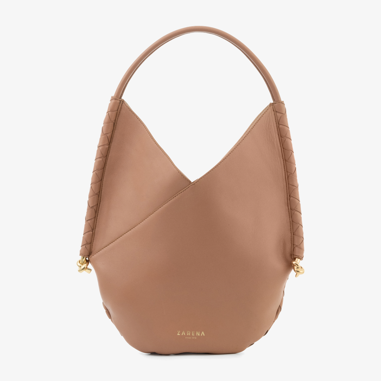 Donna - чанта за рамо с ръчно плетен детайл и метални елементи - кафява