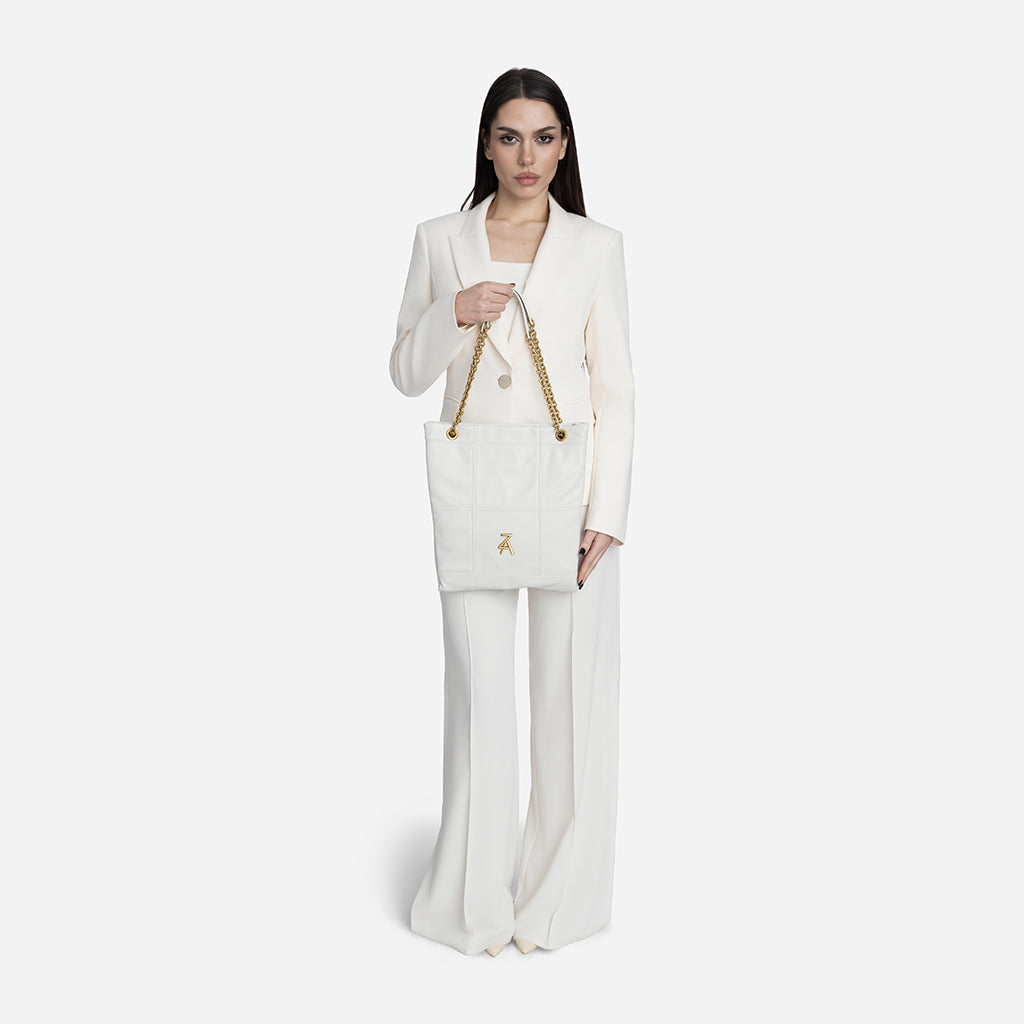 Чанта Lea впечатлява с изчистен и елегантен дизайн, който лесно ще съчетаеш с всеки свой аутфит. Меката ѝ текстура и декоративните шевове ѝ придават стилен, модерен характер, а златистият синджир добавя изискан акцент към визията ти. Можеш да я носиш с две къси дръжки на рамо, а при нужда дръжките се оформят в дълга кросбоди дръжка за повече удобство. Идеалният избор е за ежедневието ти и за по-елегантни поводи.