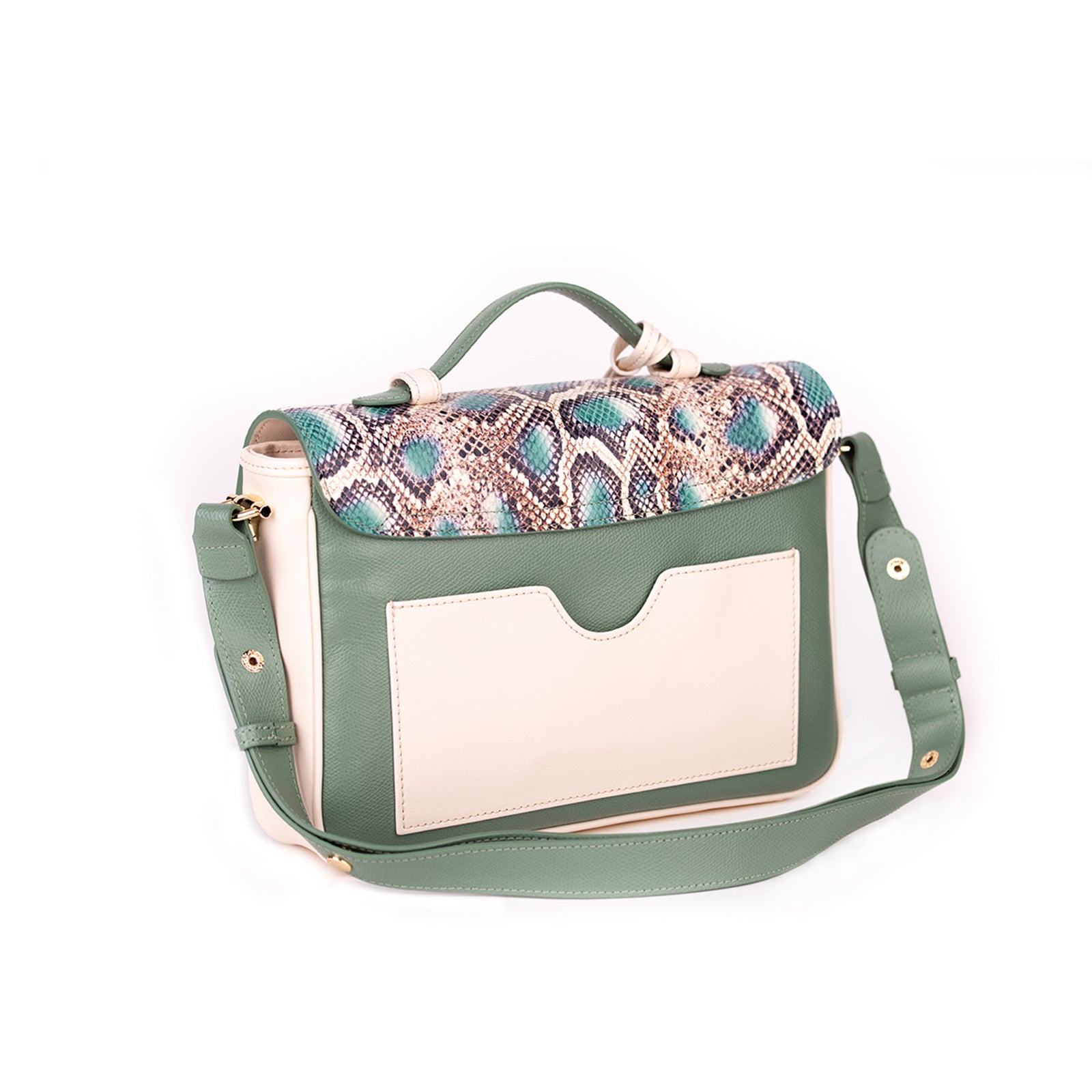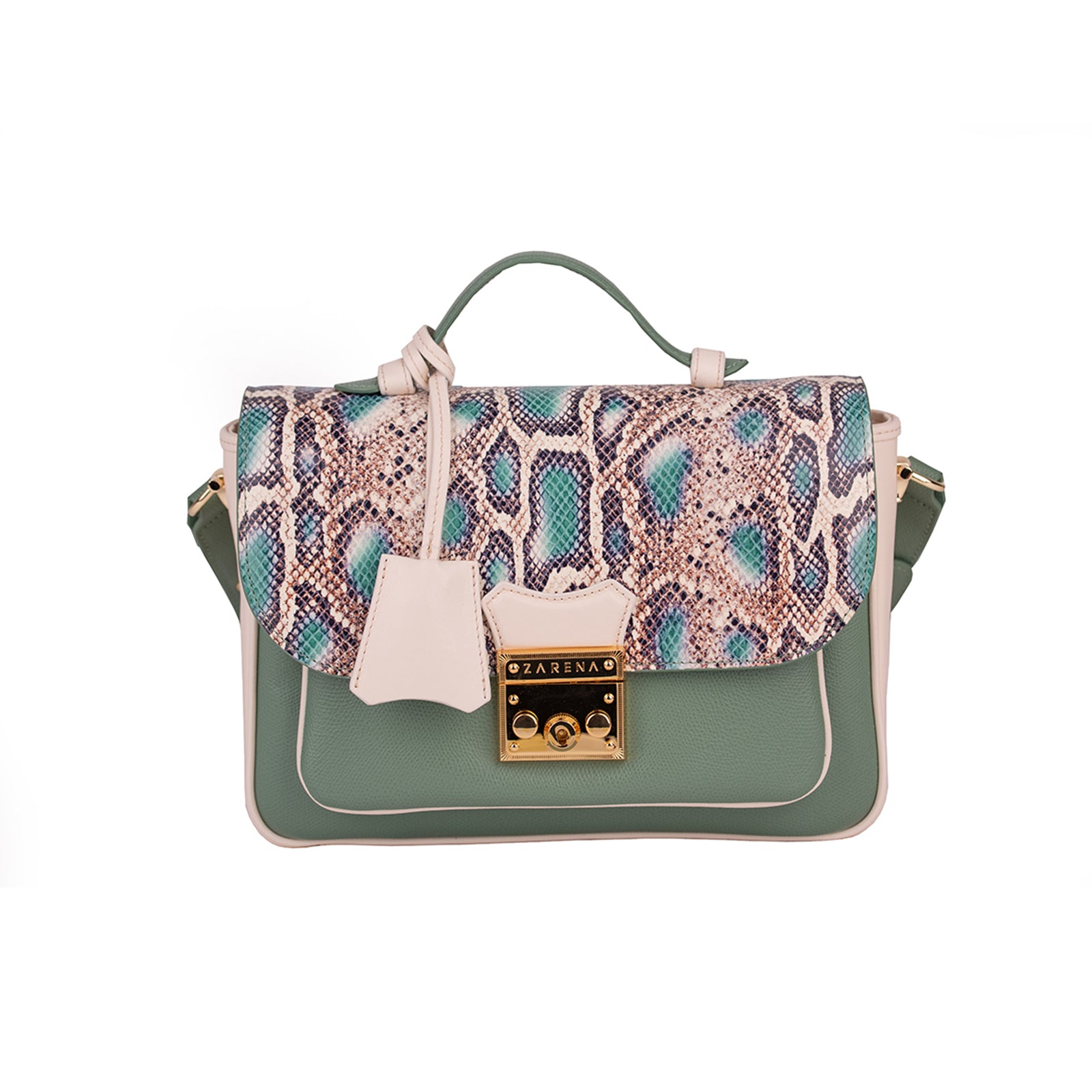 Angelina е абсолютна модна стихия и bestseller, която е тук, за да задоволи глада ти за пролетно-летни тенденции. Тази дамска кожена чанта разполага с ефектен, модерен за сезона принт, който провокира и изразява силното женско присъствие. Може да се носи по 3 начина - в ръка, през рамо или като крос боди, за да избереш най-удобния вариант според настроението и случая.