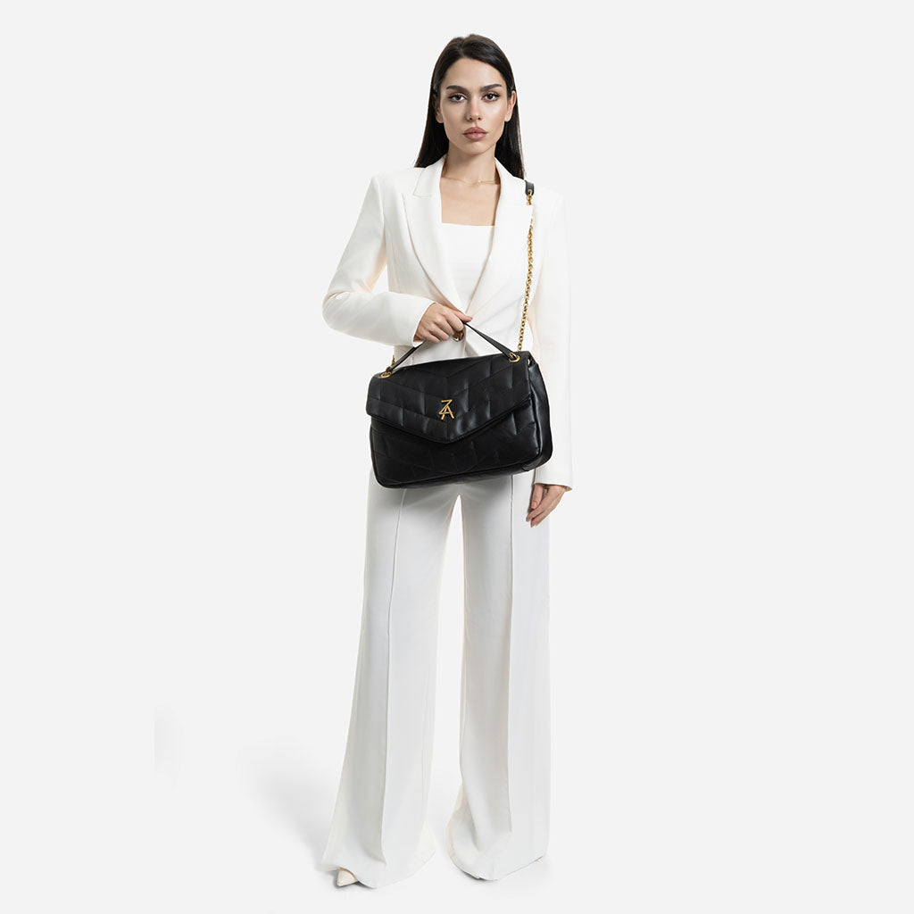 Catherine е чантата, която съчетава елегантност и удобство в един аксесоар. Магнитното копче прави закопчаването лесно и сигурно, а синджирът ти дава свободата да избереш как да я носиш. Удобното вътрешно общо пространство, един отворен джоб и един джоб с цип съчетават практичност с изключителен комфорт.