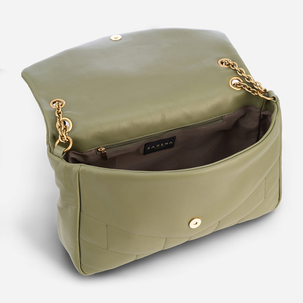 Catherine е чантата, която съчетава елегантност и удобство в един аксесоар. Магнитното копче прави закопчаването лесно и сигурно, а синджирът ти дава свободата да избереш как да я носиш. Удобното вътрешно общо пространство, един отворен джоб и един джоб с цип съчетават практичност с изключителен комфорт.