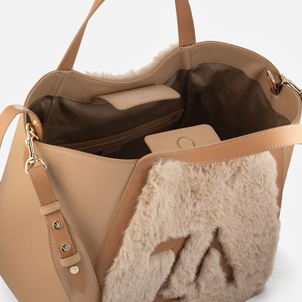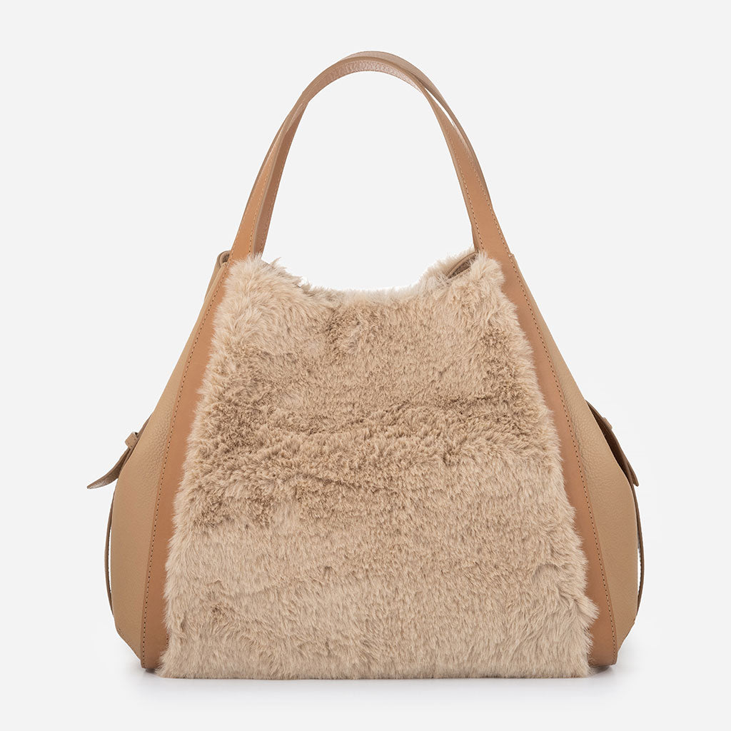 Marina е изработена от естествена кожа и е създадена, за да допълва визията ти, както за работни ангажименти, така и за свободното време. Разполага и с дълга дръжка и двойно затваряне. А детайлът от teddy плюш е изключителен акцент, който ще добави стил и уют в есенните дни.
