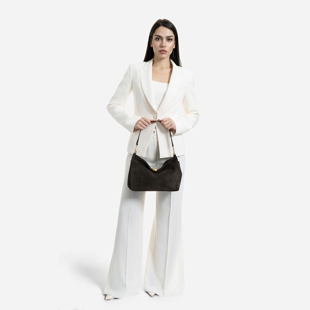 Чанта за рамо Monica от велур съчетава удобство и стил в изискан дизайн. Свалящата се дръжка позволява да я носиш по различни начини, а елегантното закопчаване придава завършеност и изтънчен чар. Перфектният аксесоар за жени, които искат да съчетаят удобство и неподправена елегантност във всеки свой ден.