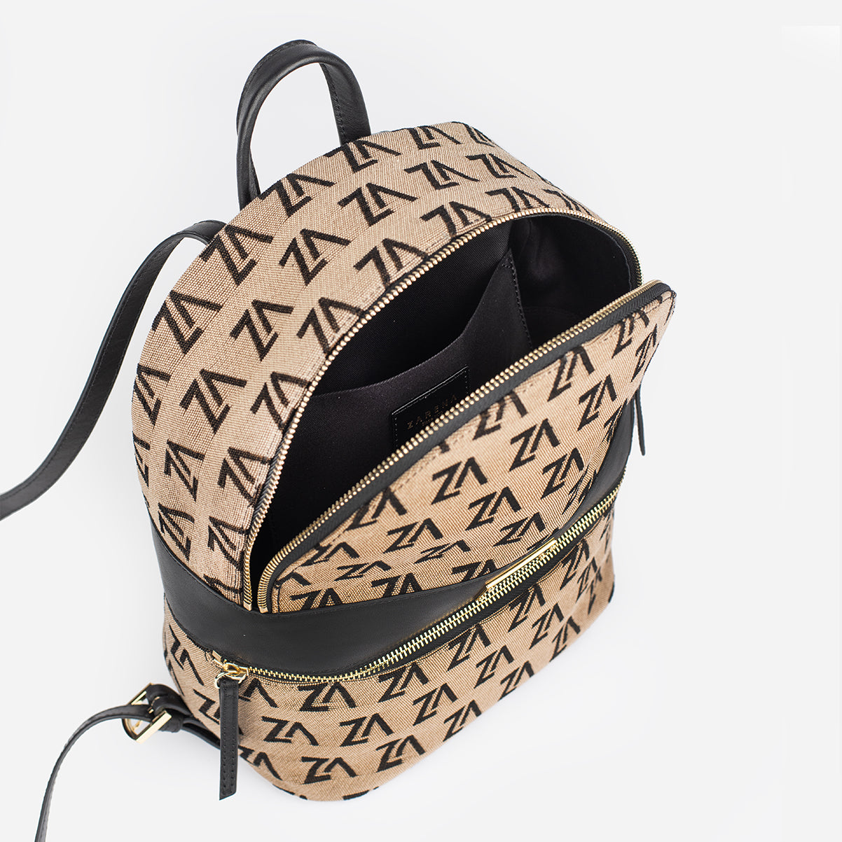 Изработена от естествена кожа, с интериор от памук, затваряне с цип, силуетът й се допълва от регулиращи се презрамки и преден джоб с цип.
