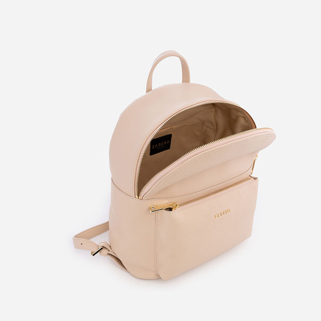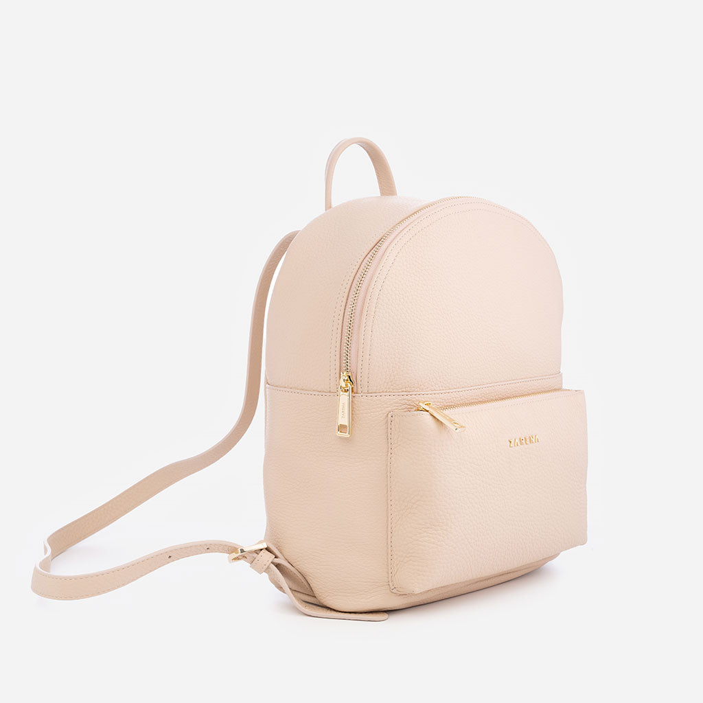 Sandra e това незаменимо модно попадение, предлагащо удобството, от което се нуждаеш всеки ден. Тази прелестна кожена раница разполага с просторна вътрешна част с приятна памучна подплата, отделение за твоя телефон и красив външен джоб с цип. Тънките й регулируеми презрамки допълват елегантния й силует и ти дават възможност да определиш перфектната им дължина. Абсолютен bestseller.