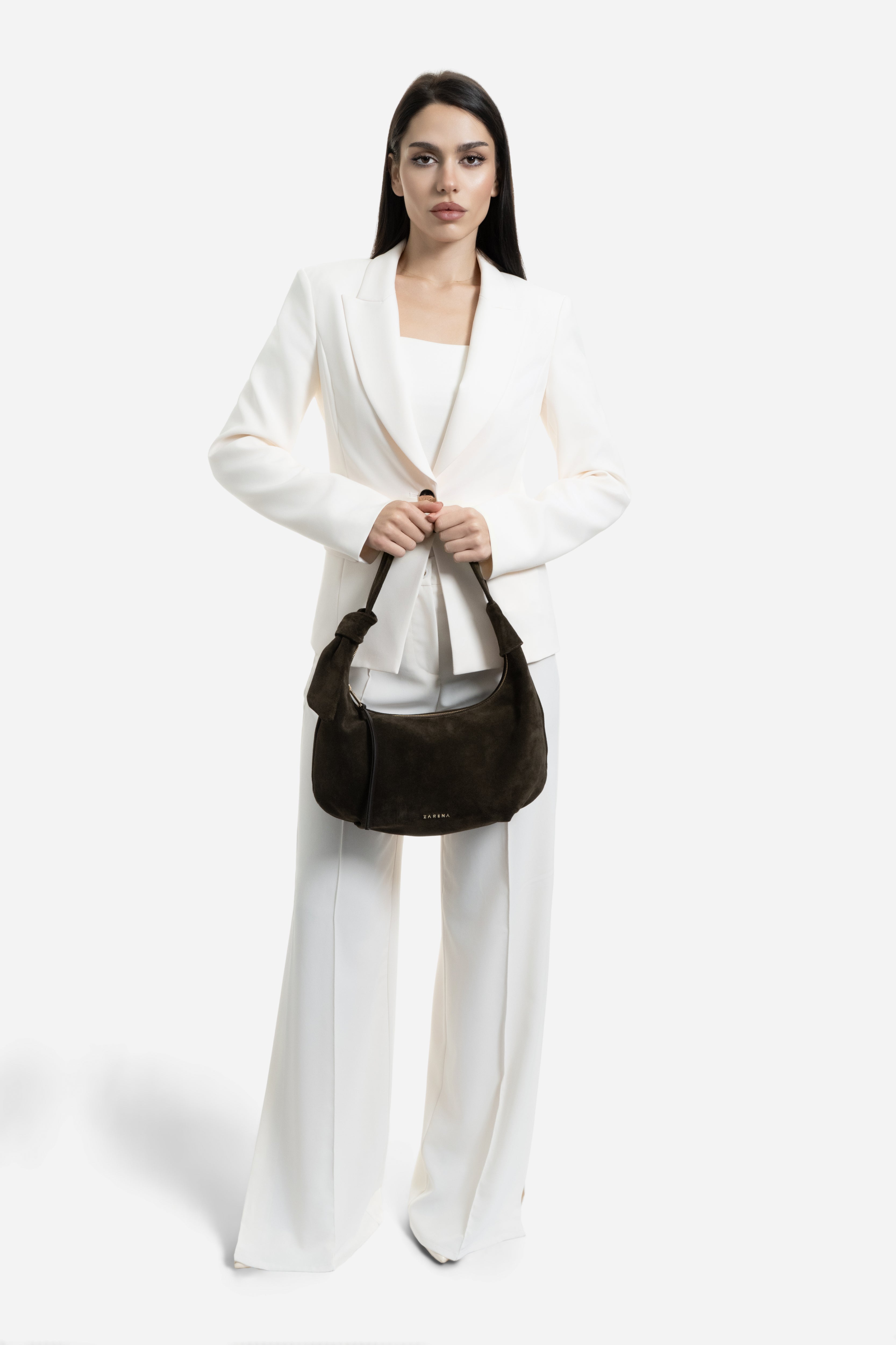 Чанта за рамо Simona от велур съчетава комфорт и модерна елегантност в един изискан аксесоар. Тя те следва с лекота през целия ден, придавайки финален щрих на твоя аутфит. Идеална за теб, когато искаш да добавиш модерна нотка и женствен чар към визията си.