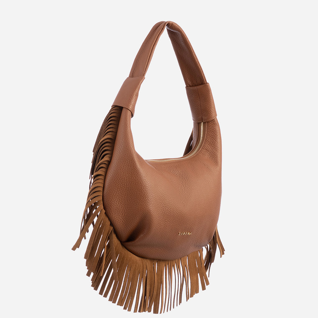Чантата Simona впечатлява със своя изчистен силует и изразителни ресни от мек велур, които придават движение и характер. Този детайл добавя модерна нотка към всяка визия, правейки модела незабравим и подчертава твоята индивидуалност.