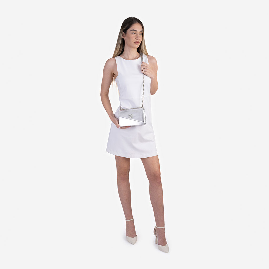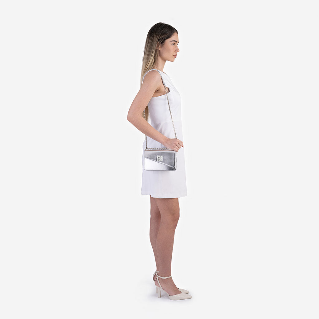 Stefany - крос боди чанта в сребристо